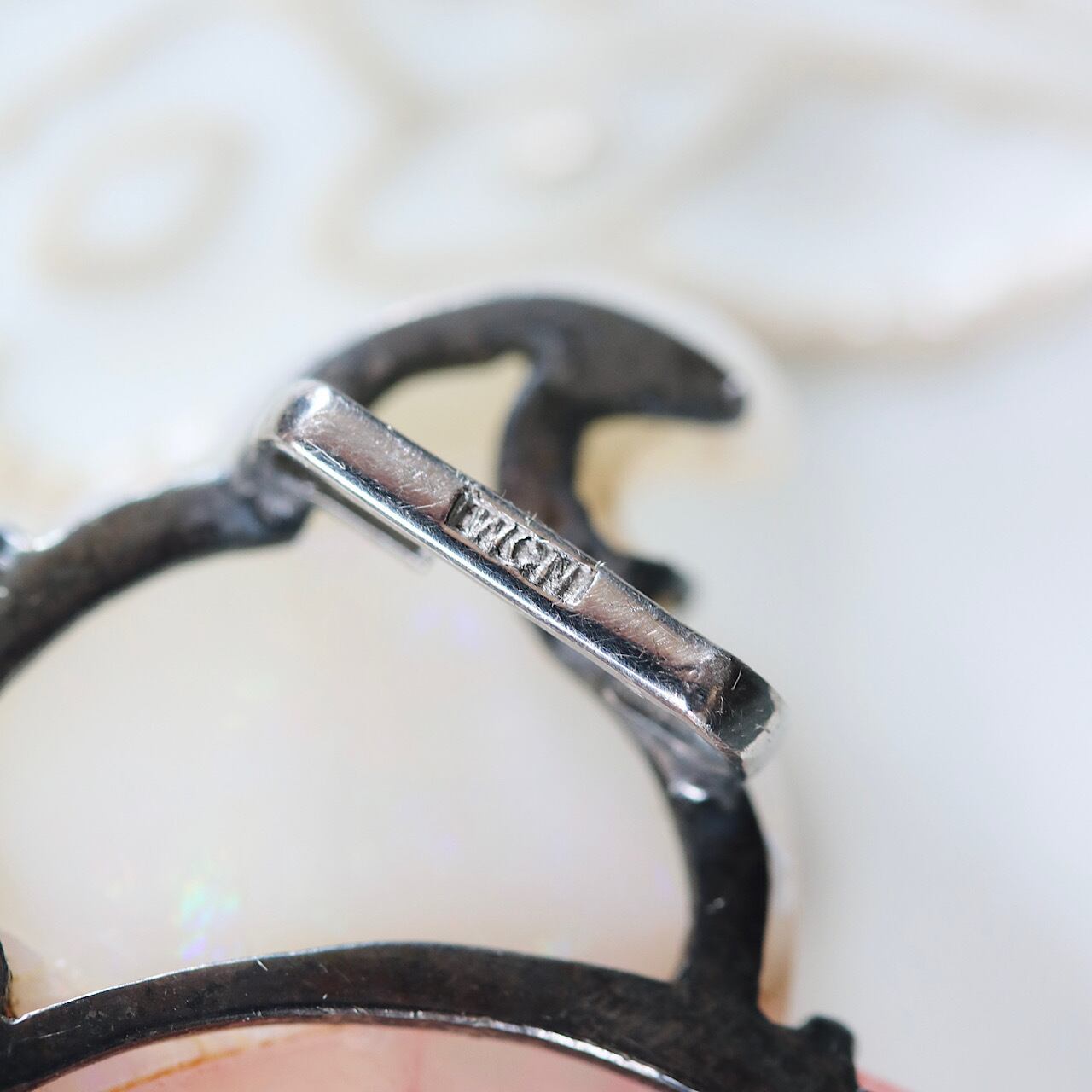 WCN(ホワイトコイン)天然ローズクォーツ&天然オパール&カルセドニー 蝶のアンティーク帯留め。