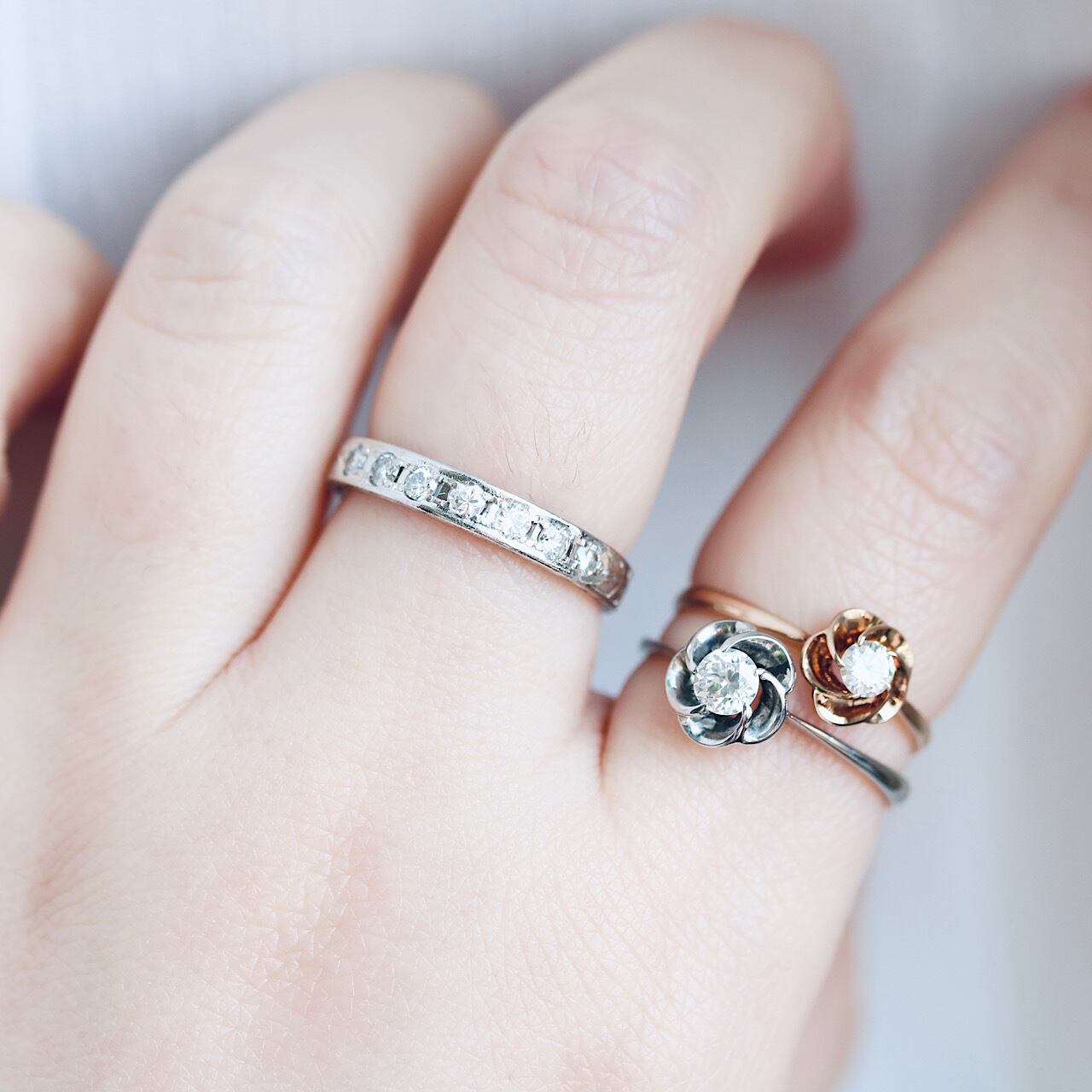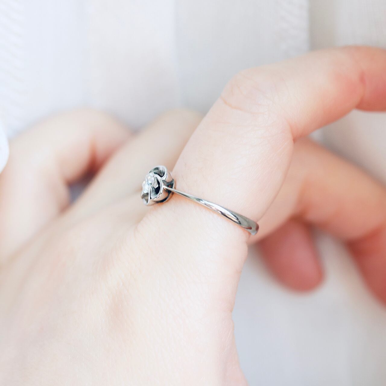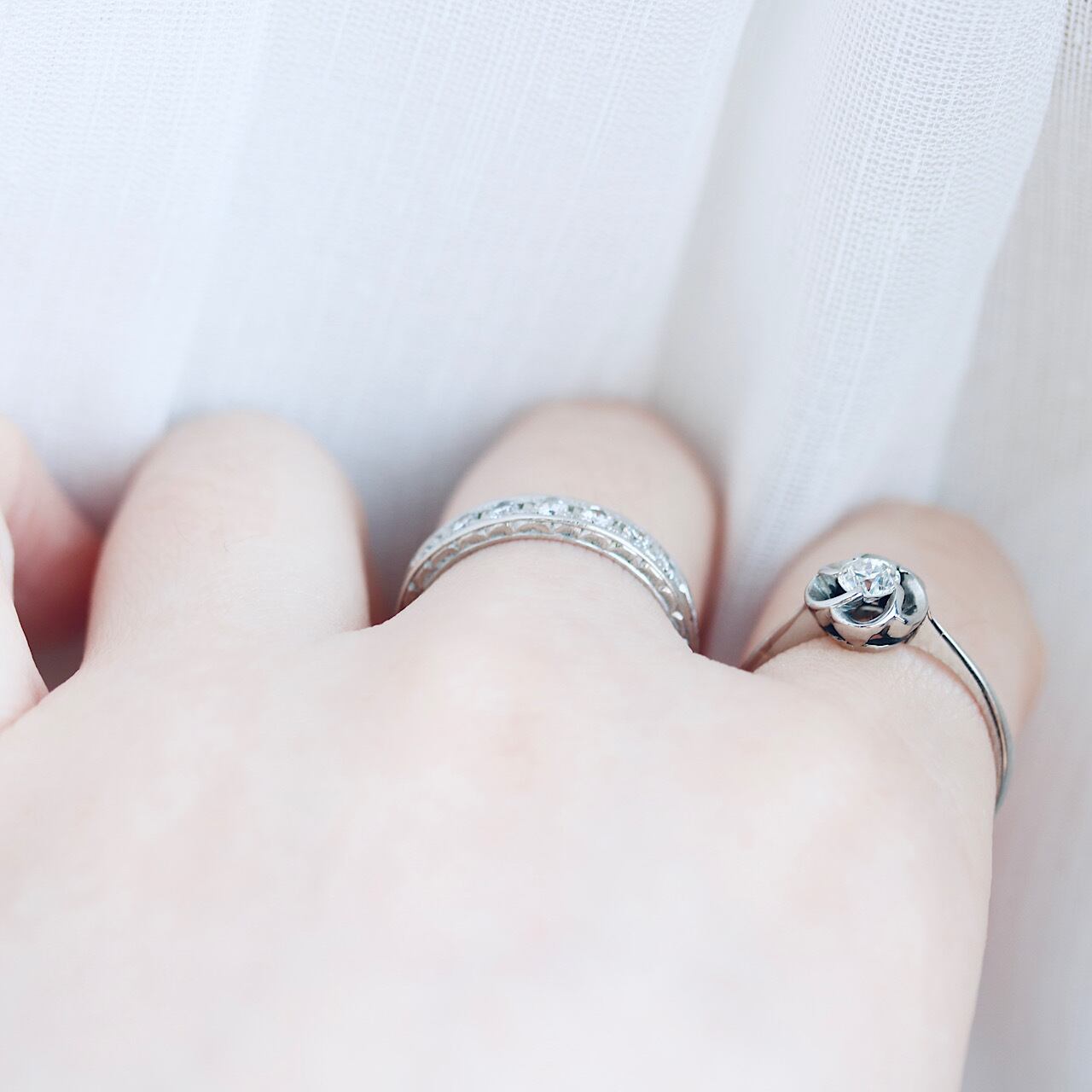 梅の花が優雅で日本らしい意匠の一粒ダイヤモンドのヴィンテージリング。