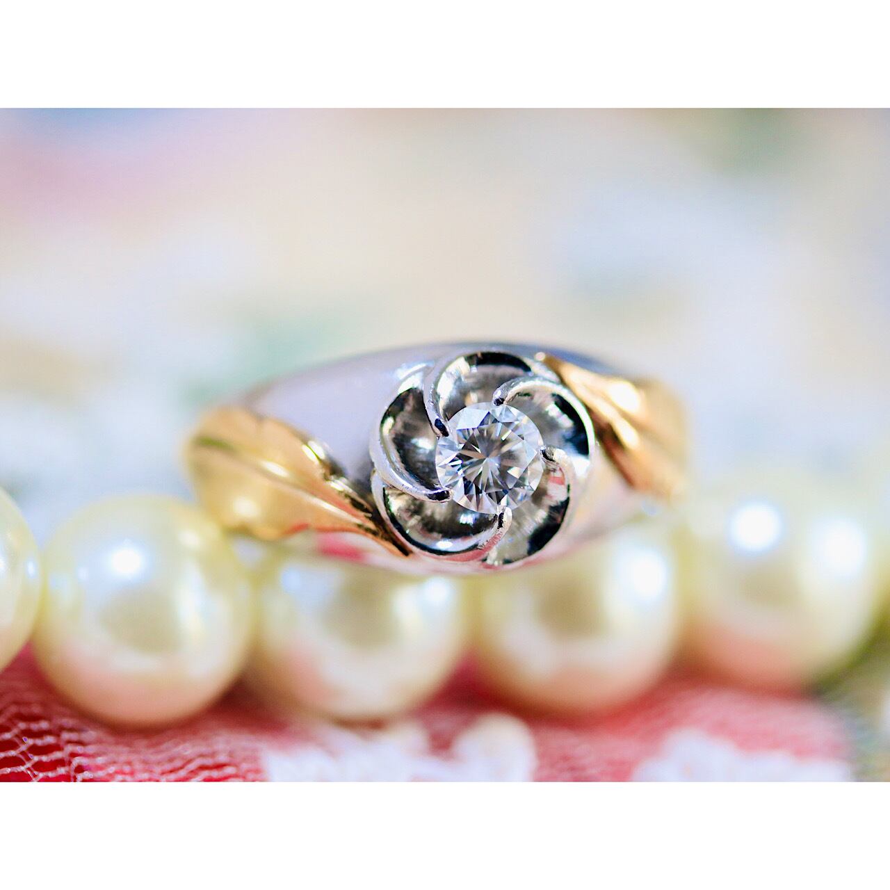 0.29カラットのキラキラな大きなダイヤモンドの捻り梅(捻じ梅)リングです。