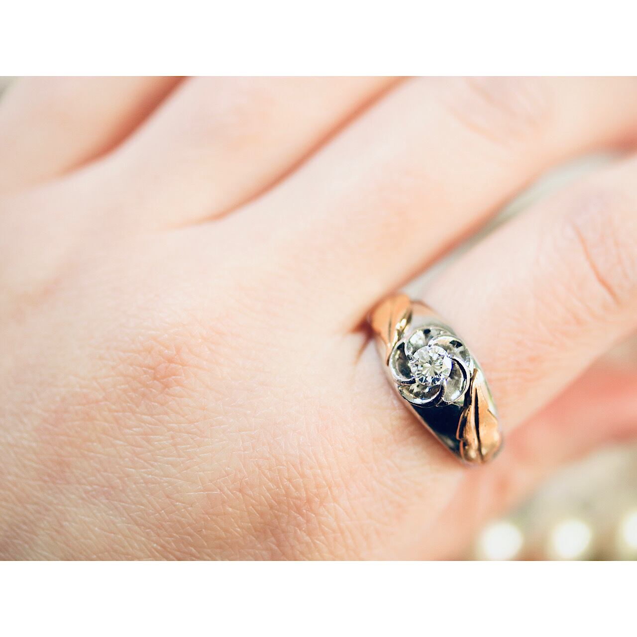 大正時代から流行していた事で有名な捻り梅ですが、こちらは地金の重さやダイヤの大きさから戦後の可能性があります。