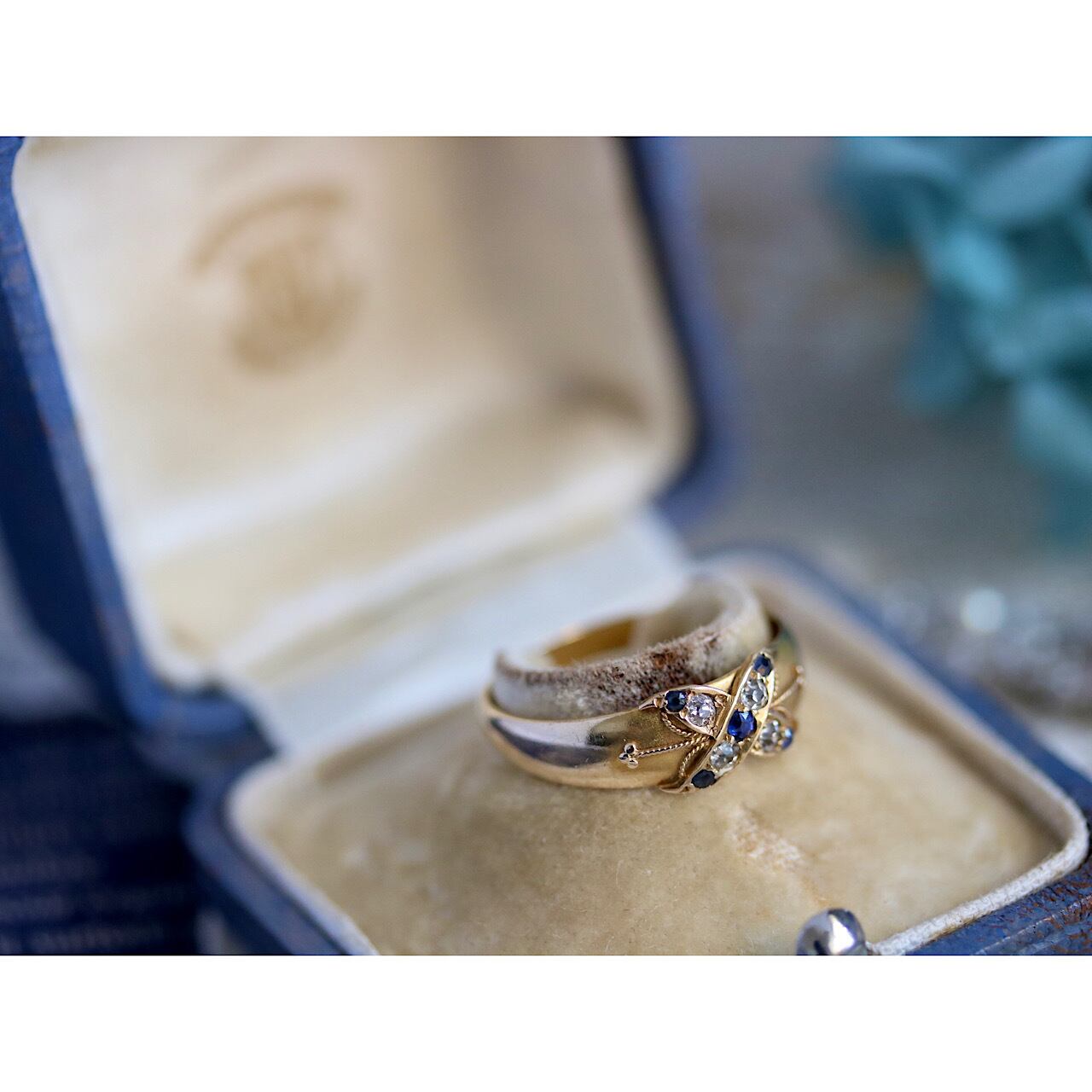 18金*ダイヤとサファイアの英国ヴィクトリアンリング