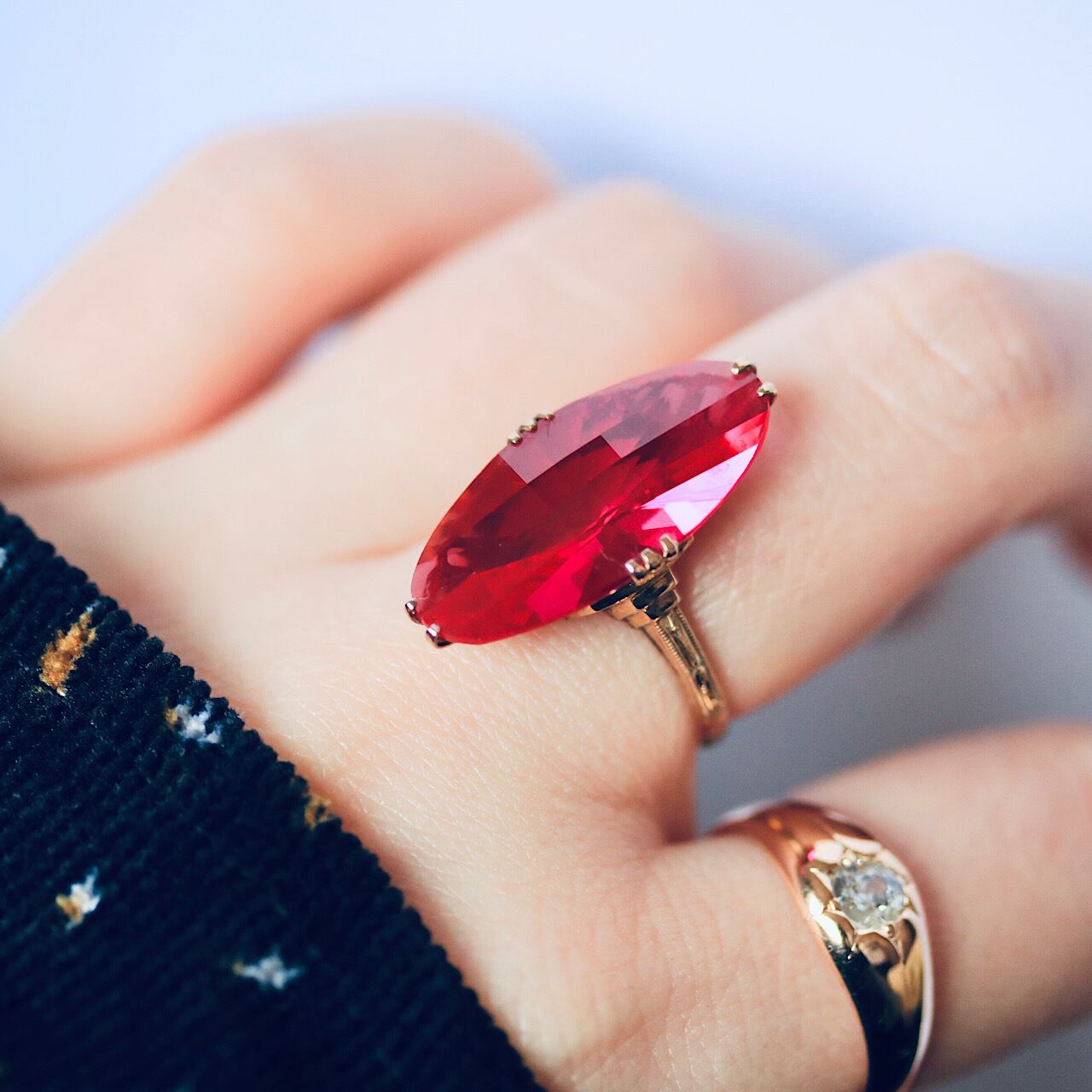 【N様専用】K18*大振り合成ルビーのヴィンテージリング