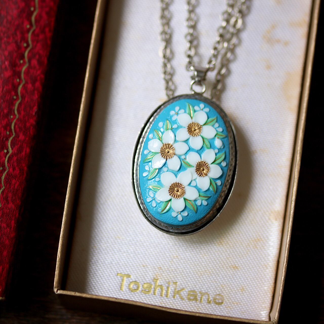 【希少】共箱付き トシカネジュエリー 白い花のペンダント