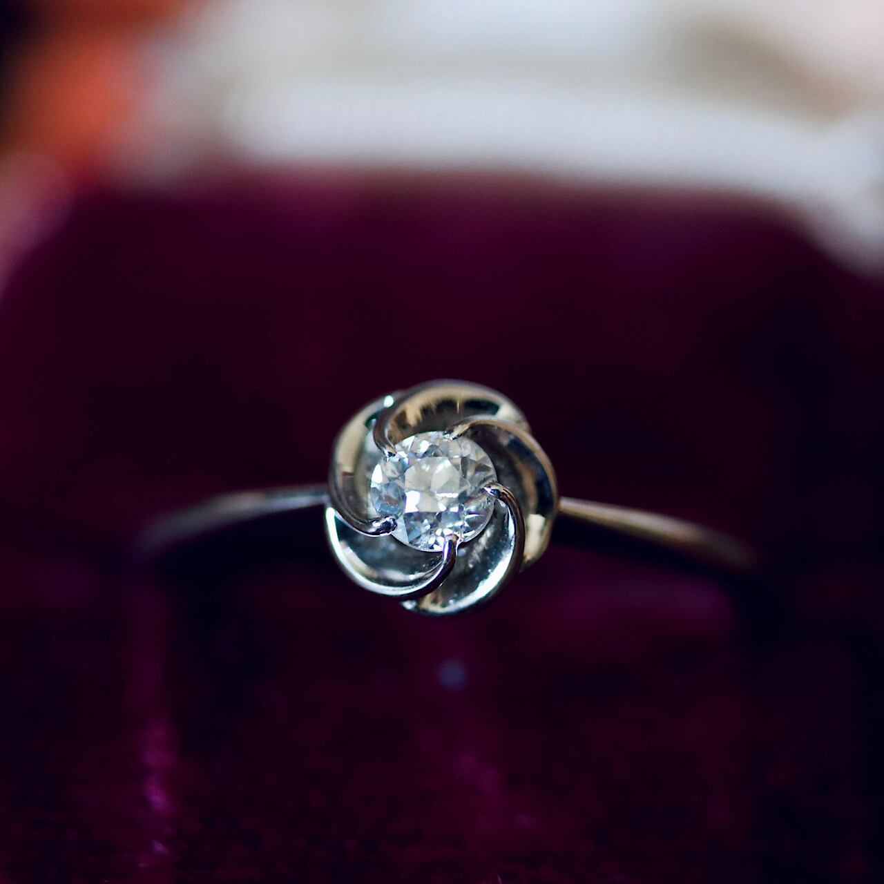 ダイヤモンドは小粒ではありますが、花弁を模したデザインの爪によって沢山の光を取り込み、キラキラとした煌めきを一層楽しめるデザインとなっています。