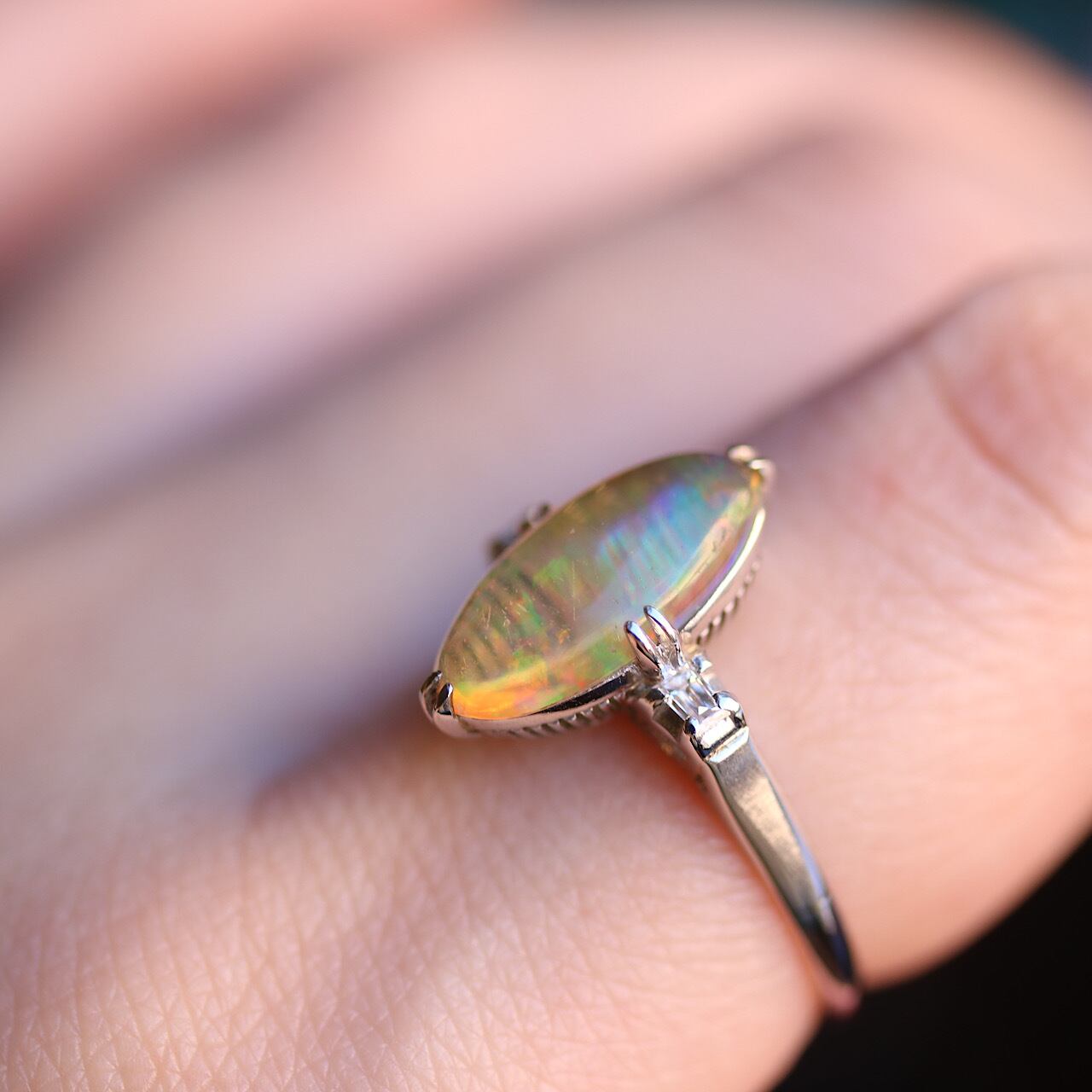 P.M刻印 ファイアオパールとダイヤモンドのヴィンテージリング