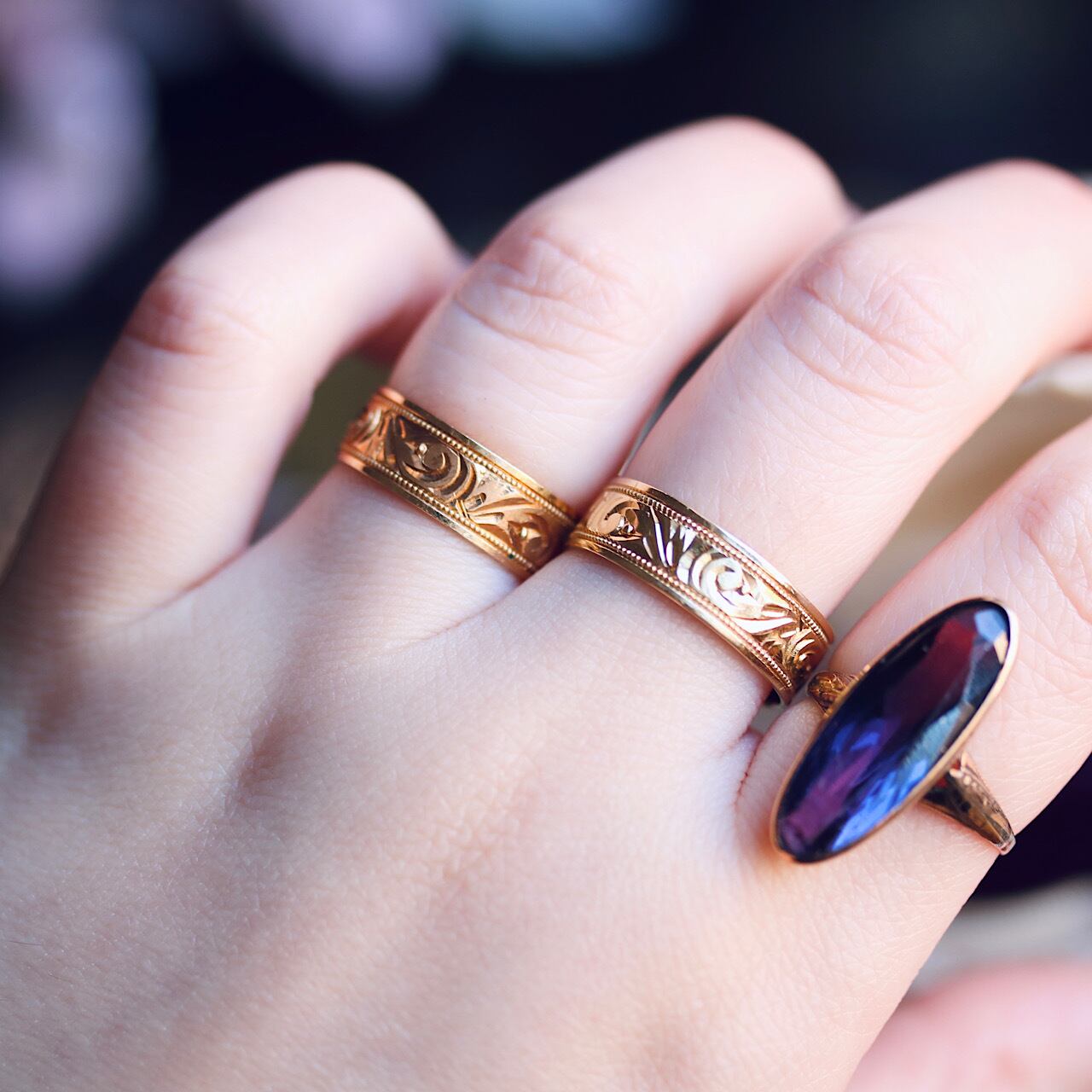 刻印の日付を見る限り古い時代の物ではありませんが、熟練された職人さんの手彫りだと思われる作品でとても美しい仕上がりのリングです。