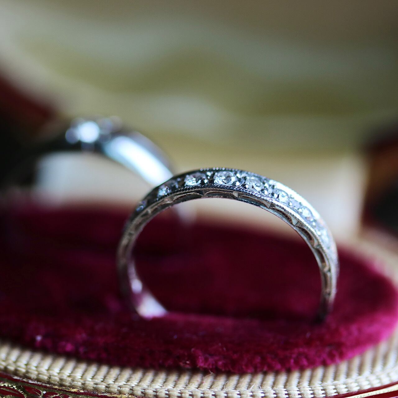 人気のハーフエタニティリングですが、このように彫金が施されているものはなかなか珍しいと思います。