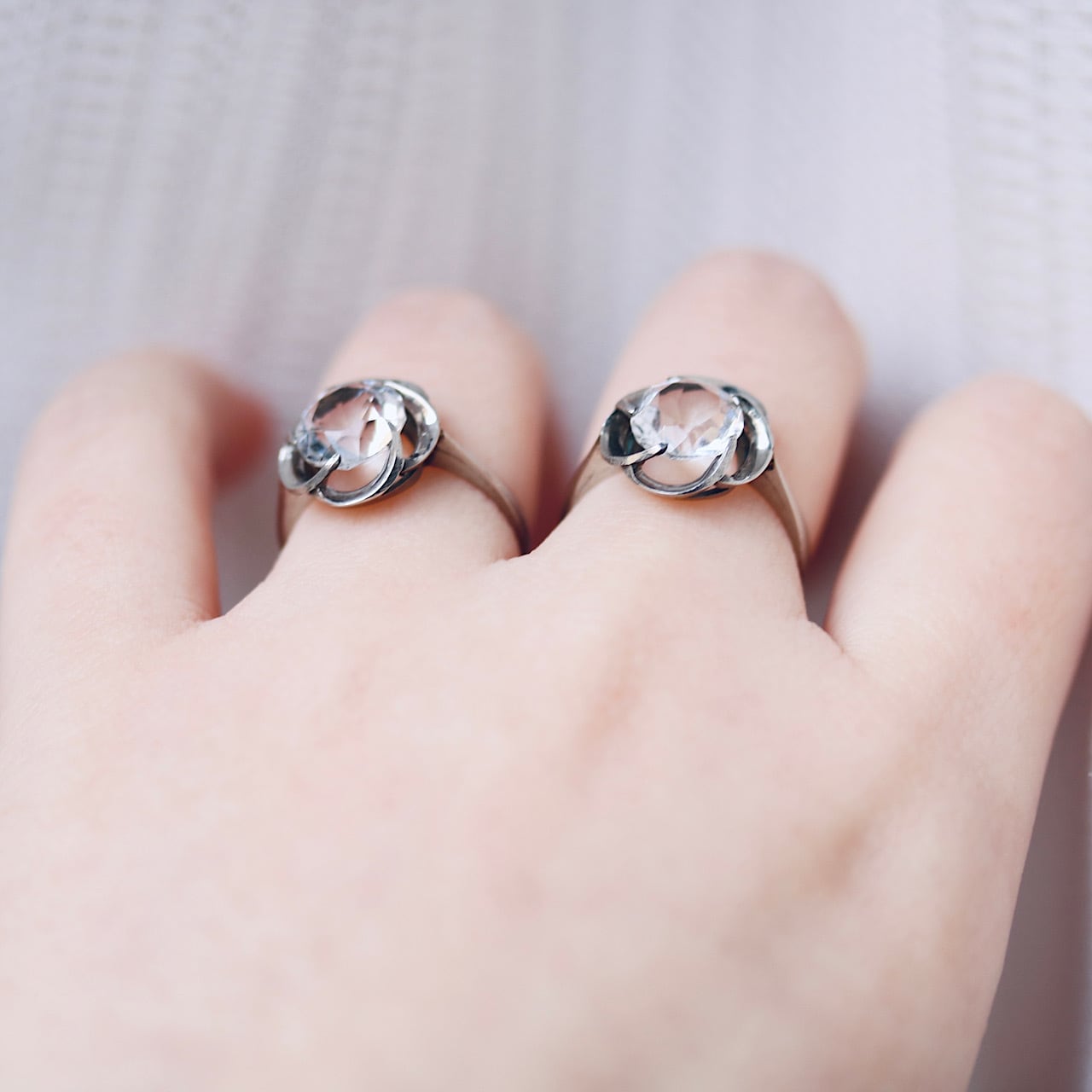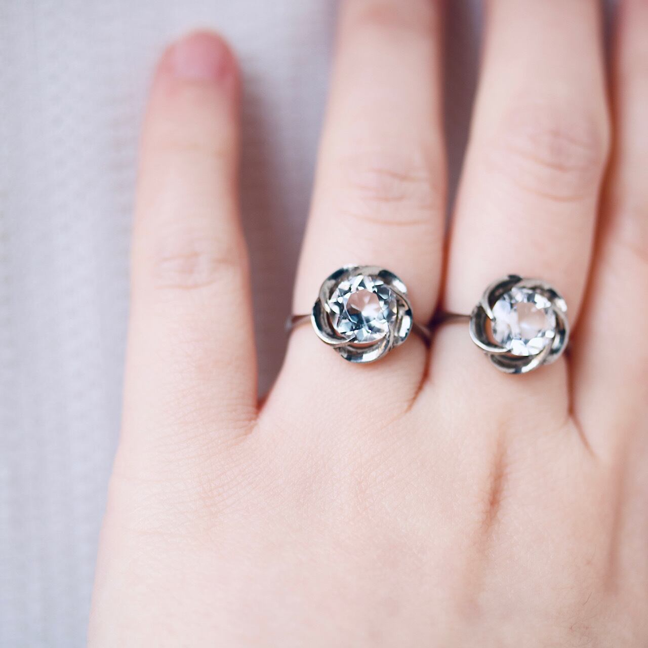 水晶か硝子のカラーレスの石はキラキラと煌めく、とても魅力的な美しさを醸し出しています。