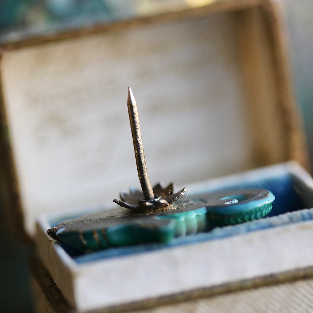 ピンブローチですのでお洋服やバック、帽子等の小物にも色々お使い頂けます。