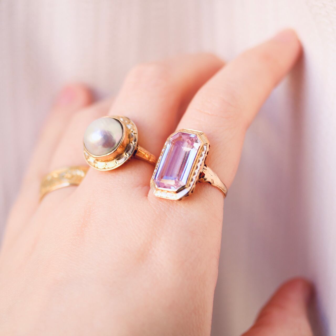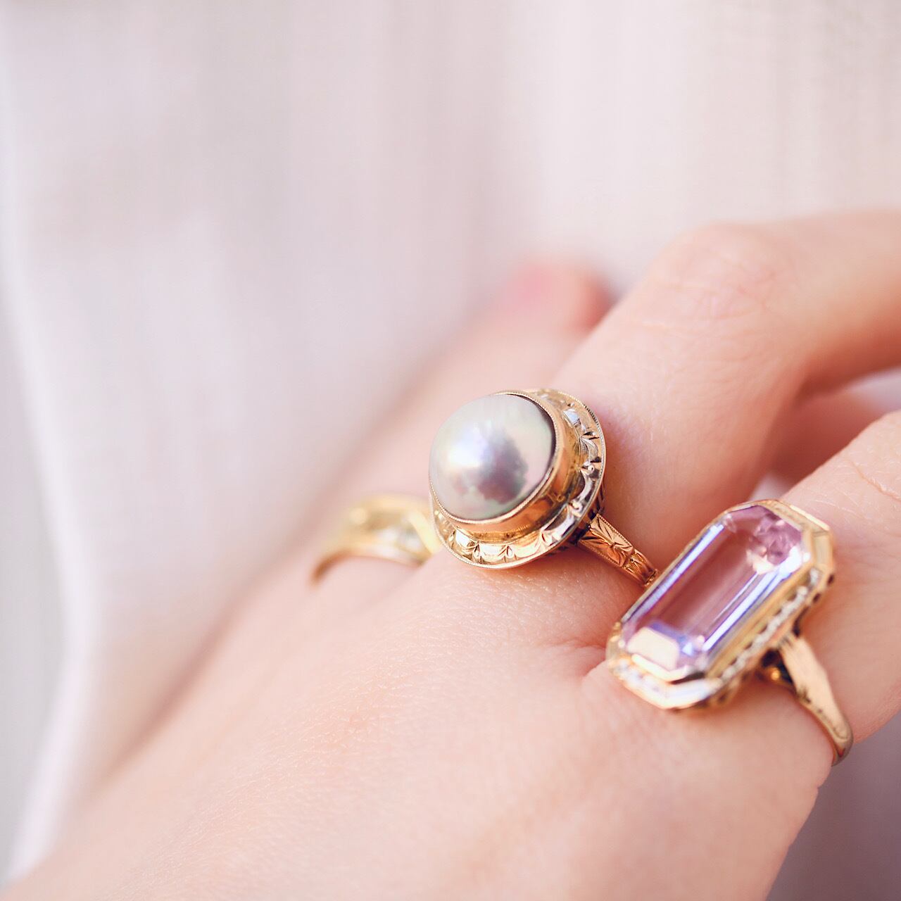 幻想的なパールと18金の縁取りが組み合わさった美術品のような美しさのリングです。