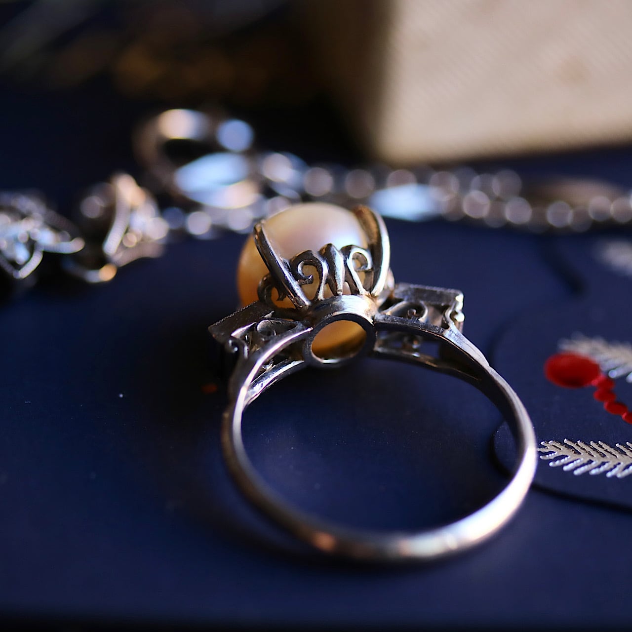 プラチナ製 一粒パールとダイヤモンドのヴィンテージリング