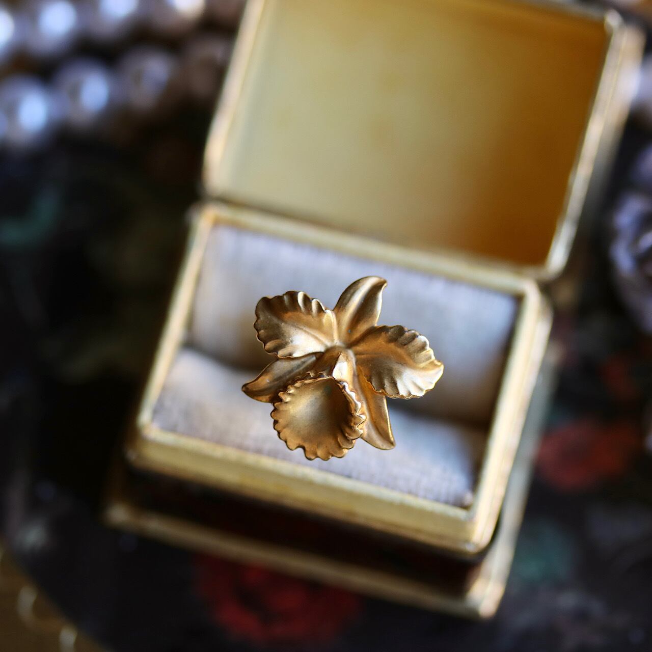 俊兼製 金色に輝くカトレアのネクタイピン。