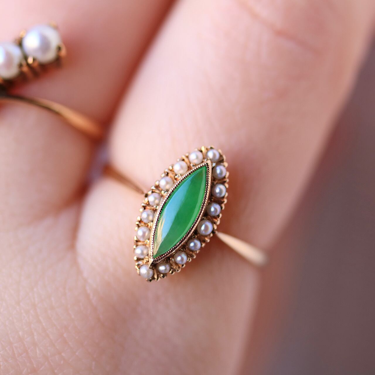 【貴重】 K18 翡翠 芥子パール取り巻き アンティークリング