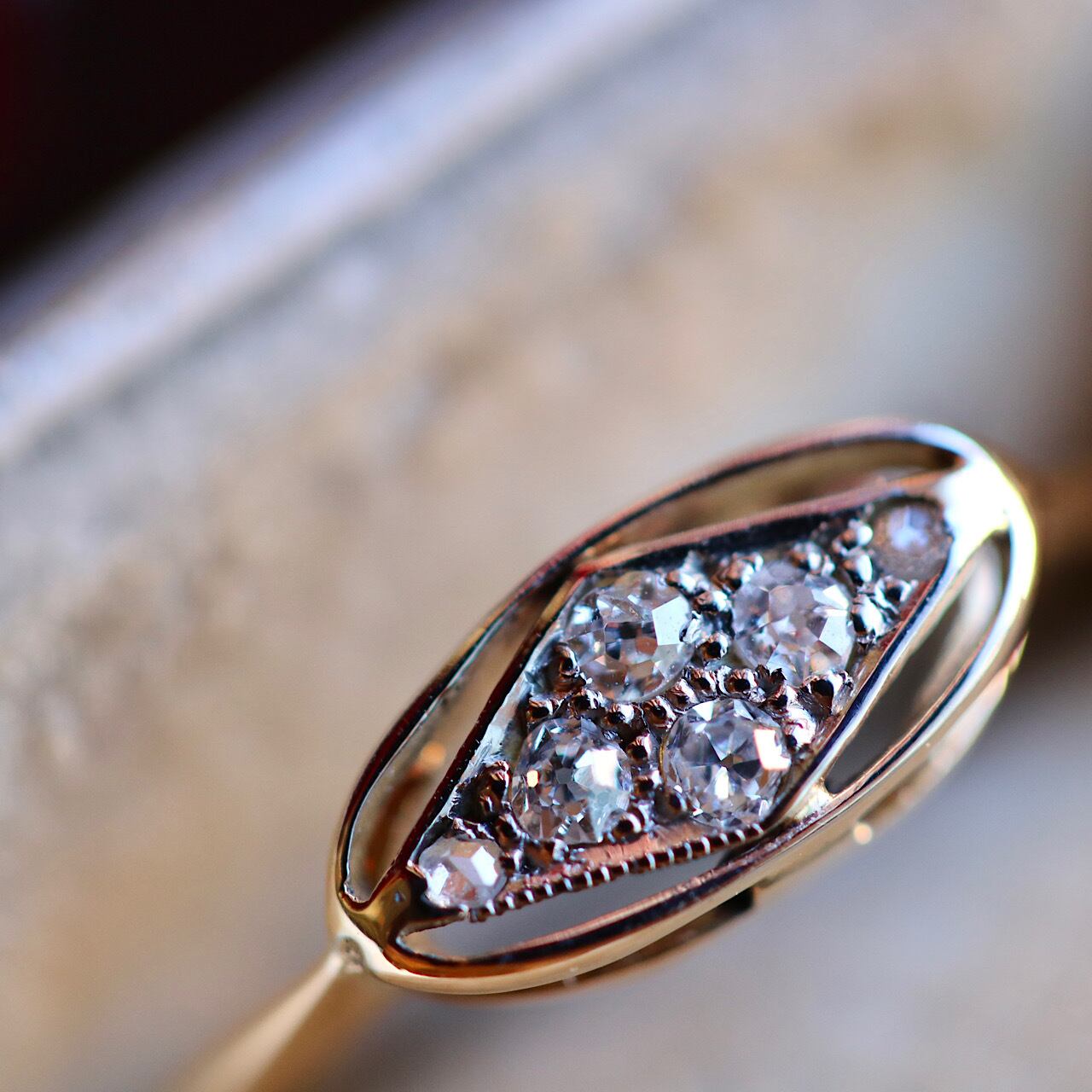 18金 イギリス製 アールデコ期 アンティークダイヤ ヴィンテージリング