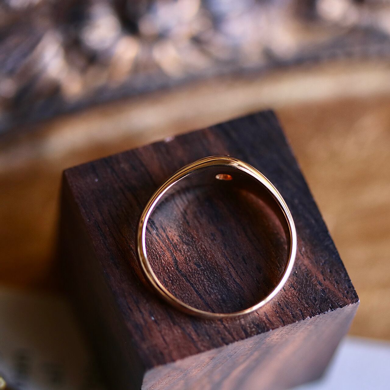 昭和以降の甲丸リングはたっぷり金が使われているのに対し、こちらは2.57gと軽く戦前らしい作りです。