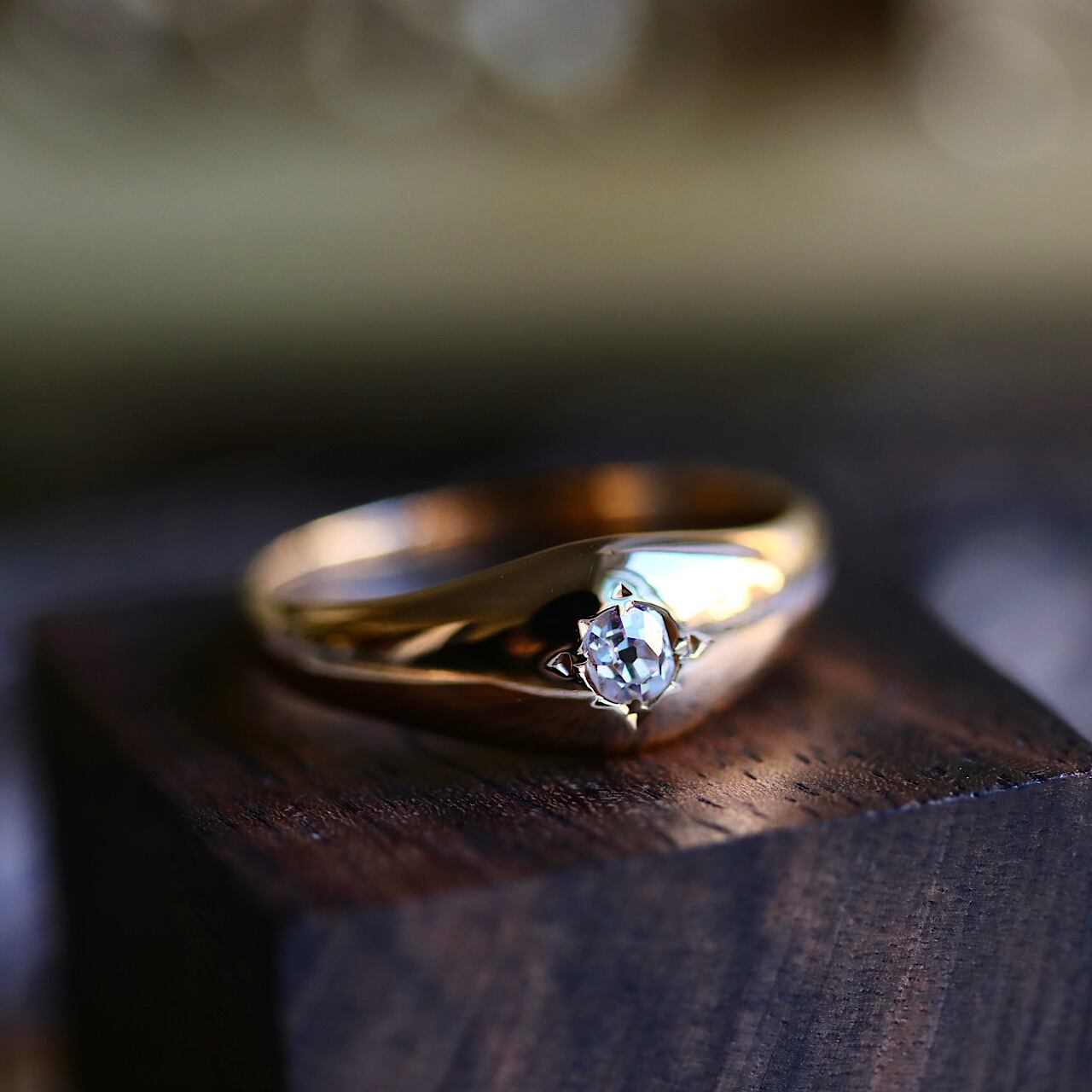 明治期と思われるオールドマインカットダイヤモンドのK18月形甲丸リング。