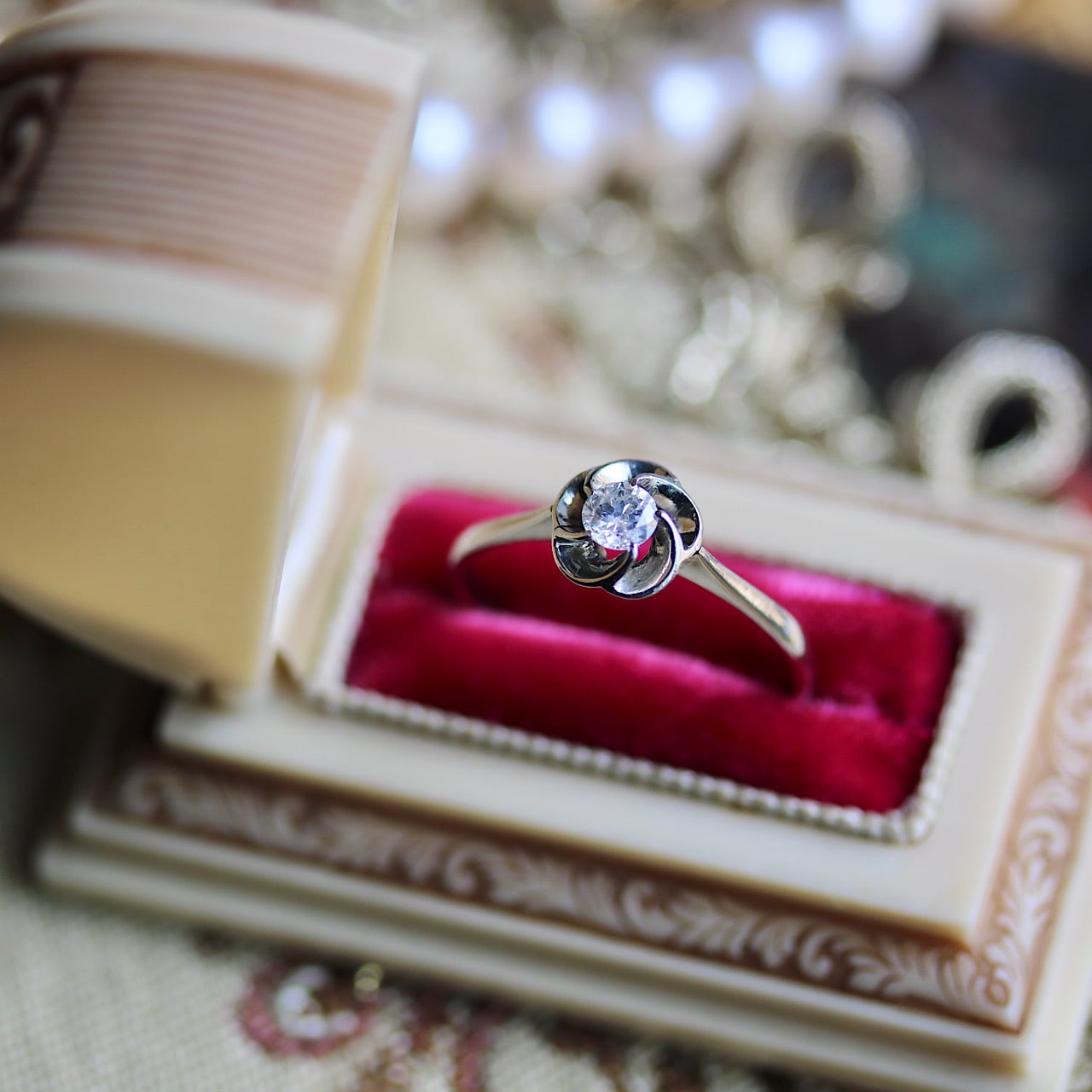 【貴重】SPM 天然ダイヤモンド 捻り梅 ヴィンテージリング ソーティングメモ付