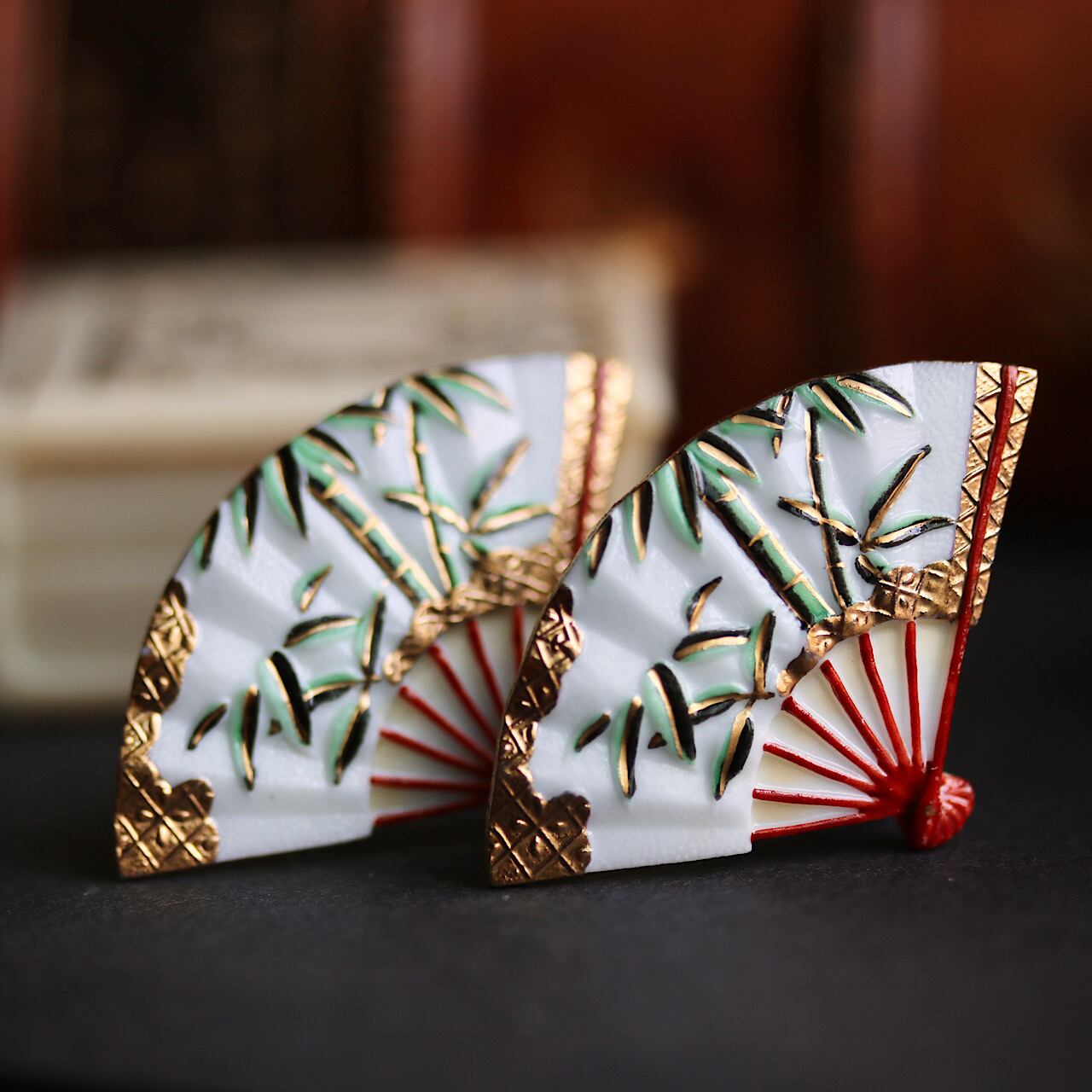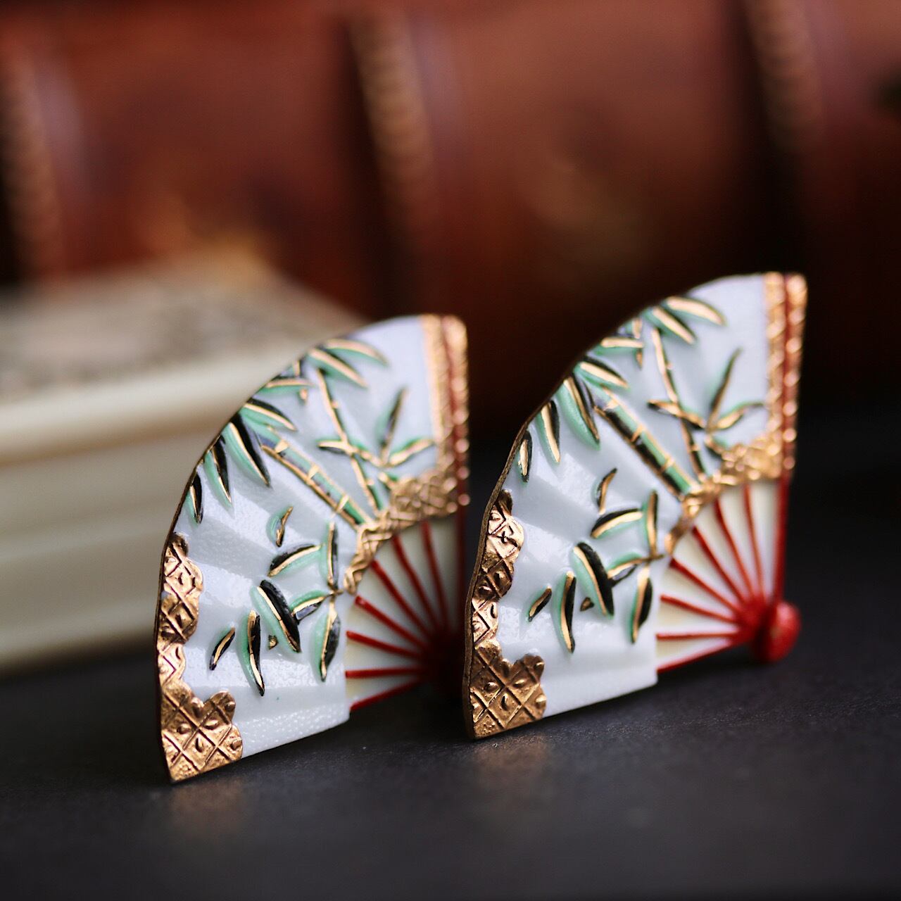 扇子モチーフのトシカネ製のイヤリング。