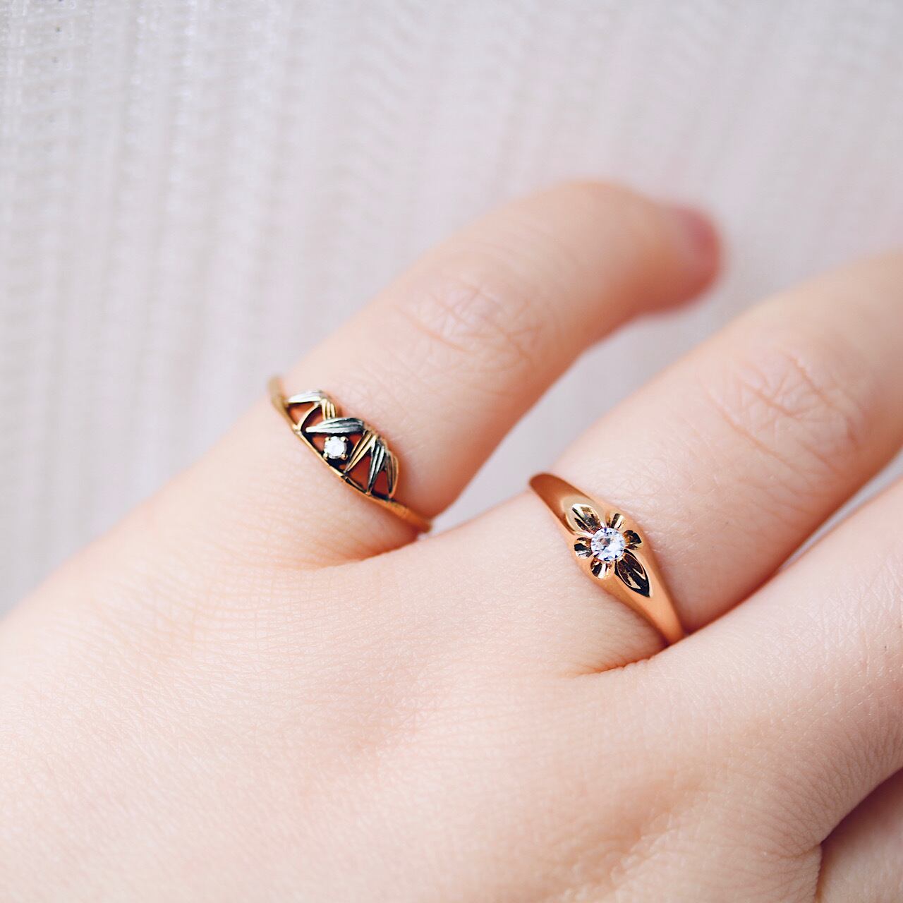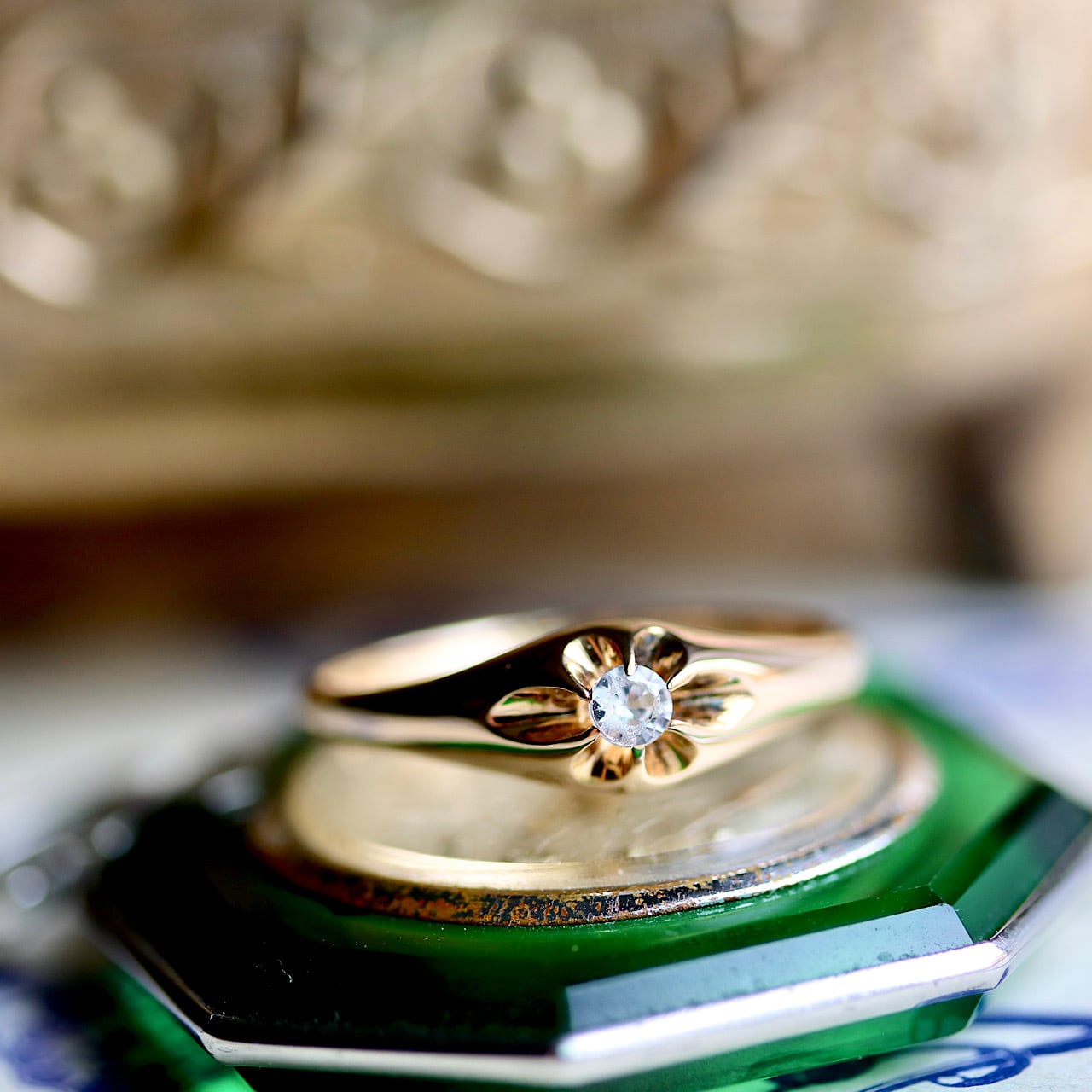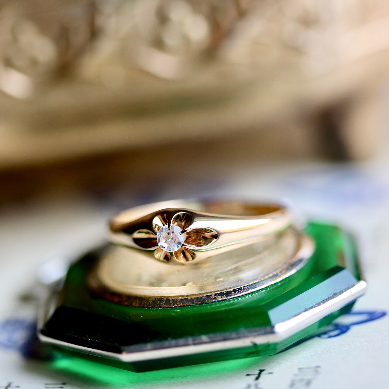 K18 菊爪セッティングの生子型 戦前ヴィンテージリング。