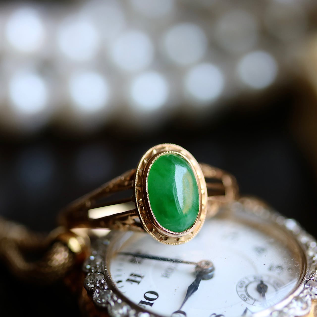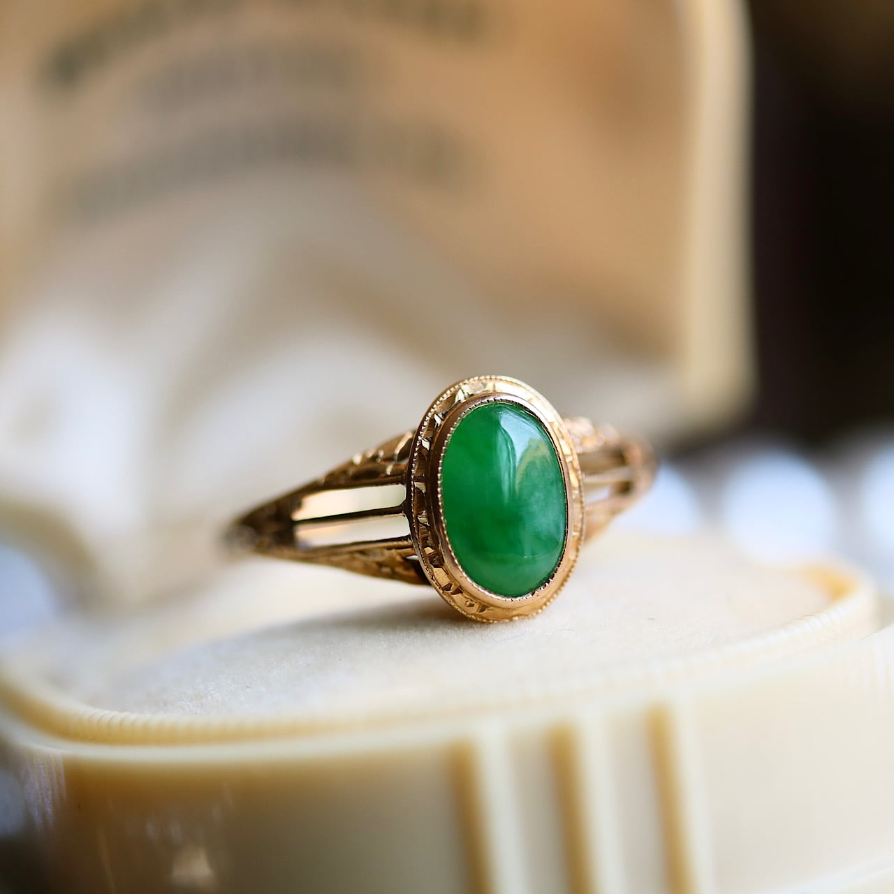 K18 翡翠の戦前アールデコリング。