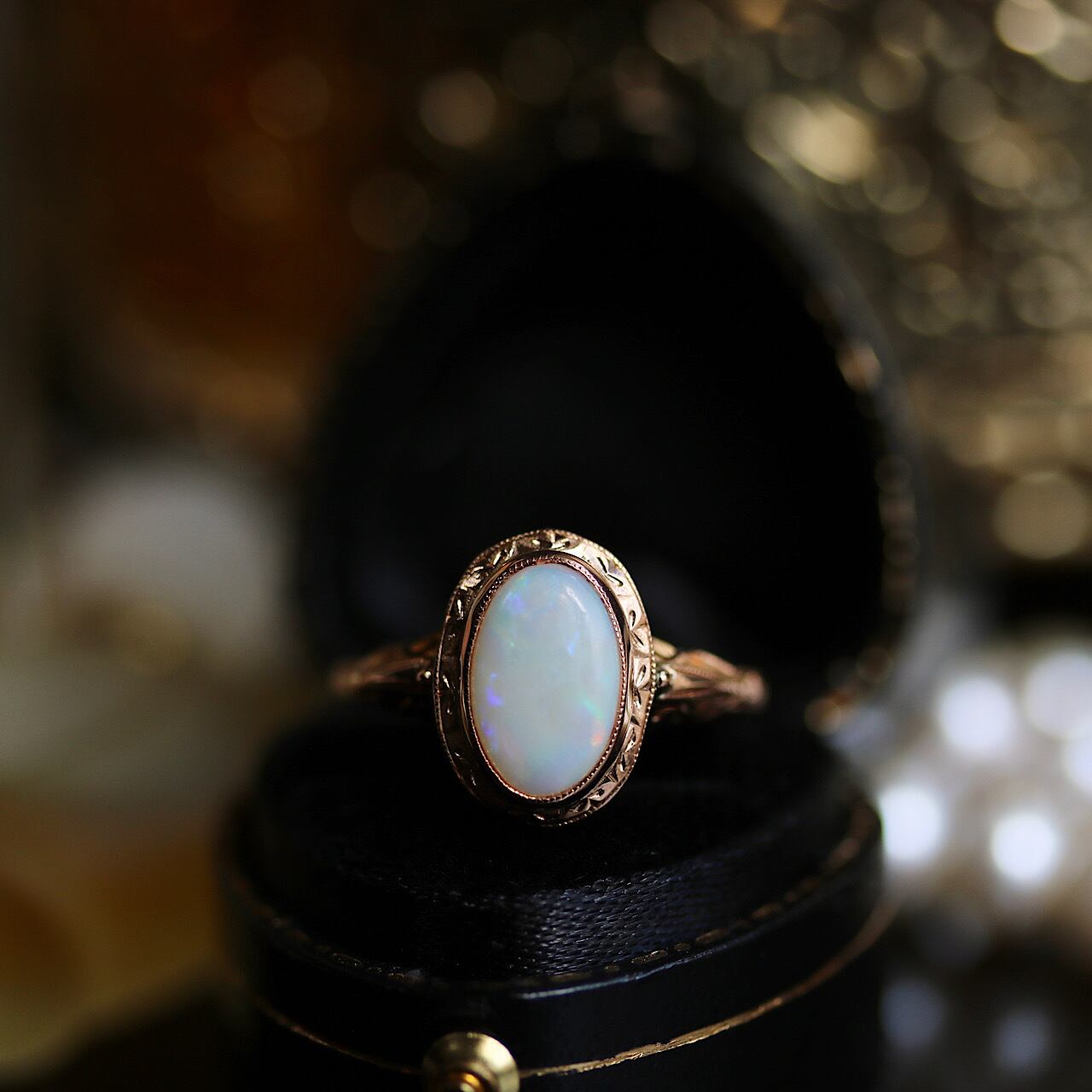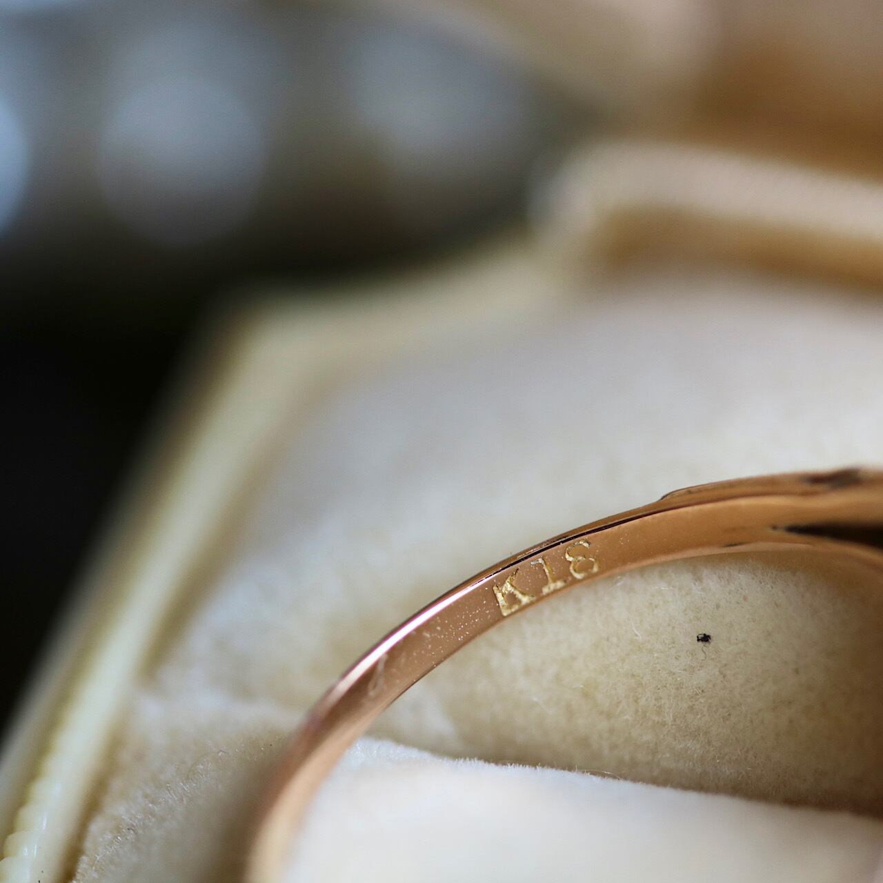 K18ホワイトオパールの覆輪留めヴィンテージリング。