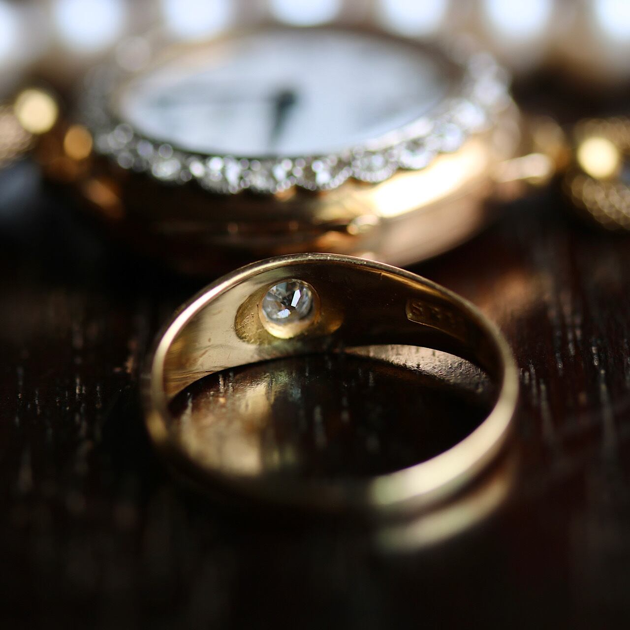 18金製 オールドマインカットダイヤモンドのソリテールリング。
