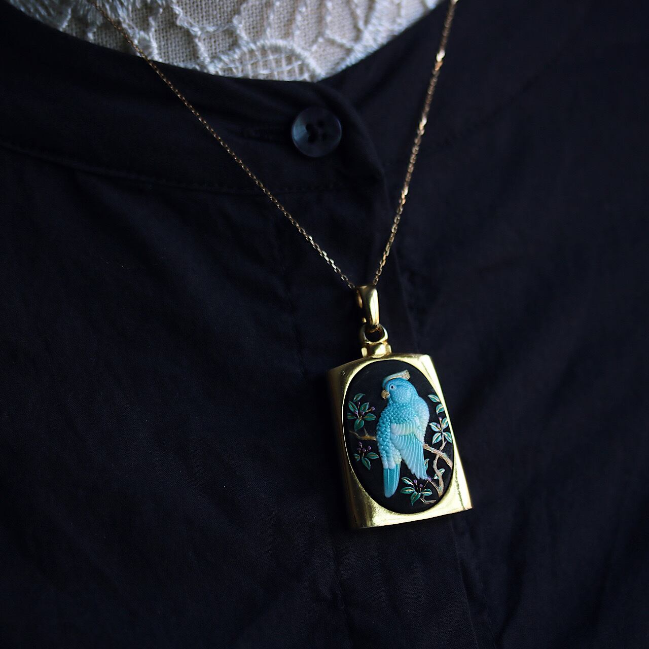 幸せの象徴である青い鳥が大きく描かれた、大変美しいペンダントトップです。