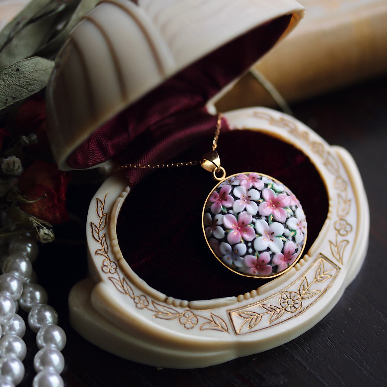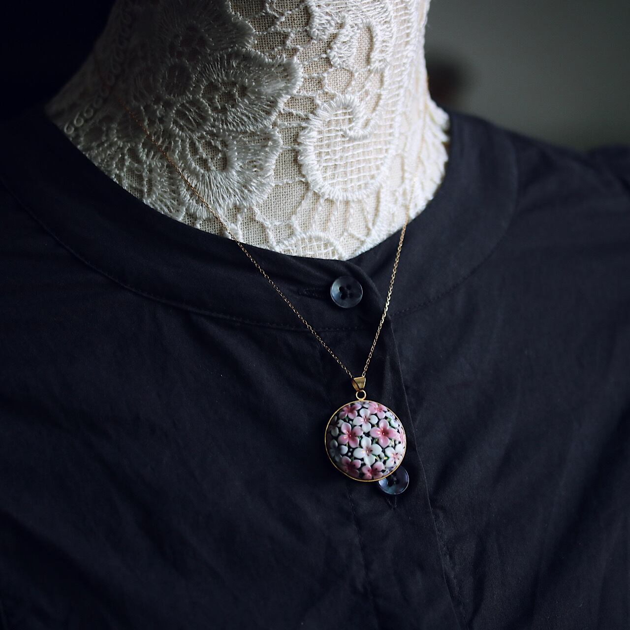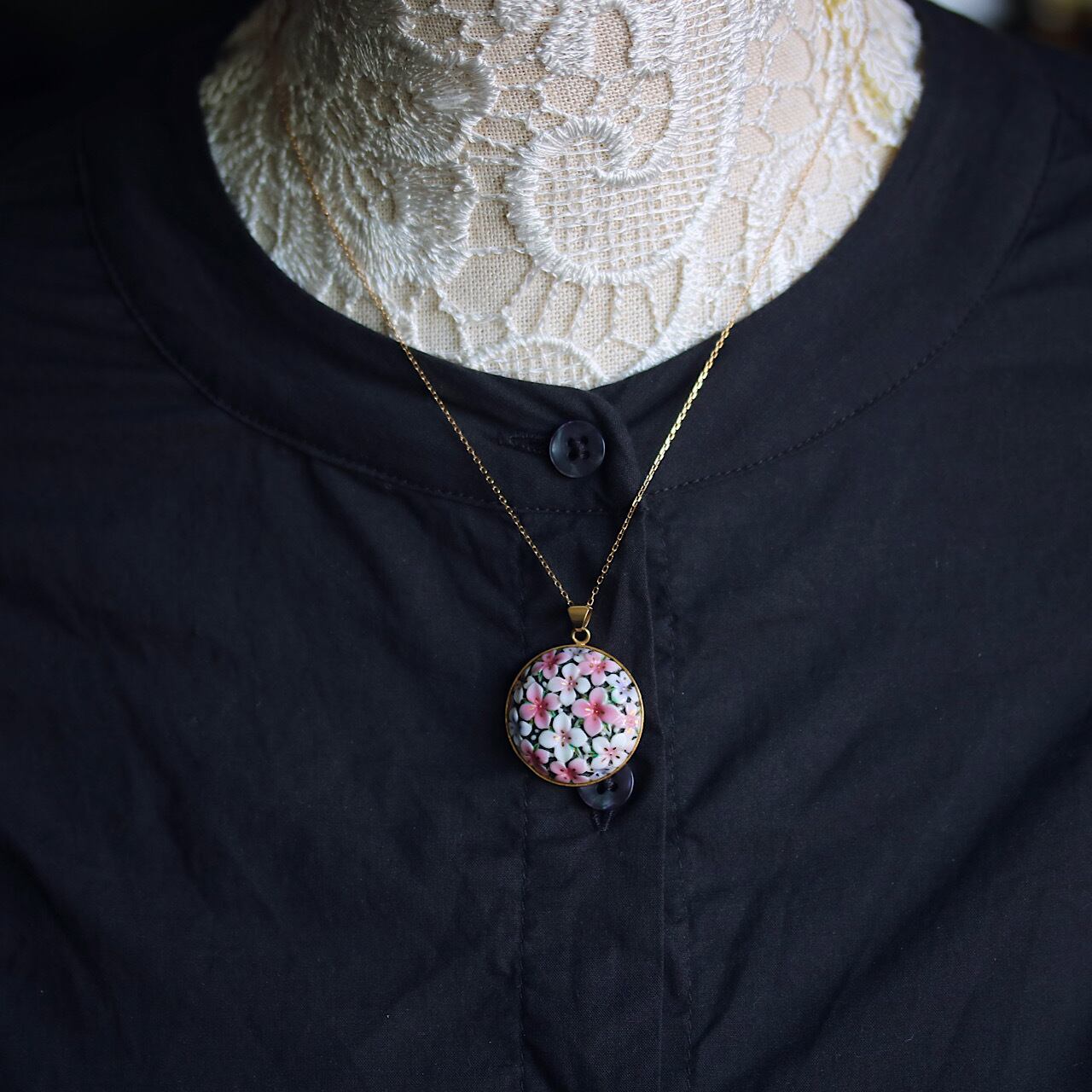 ピンク色の小花が咲き誇る俊兼のヴィンテージペンダントトップ。