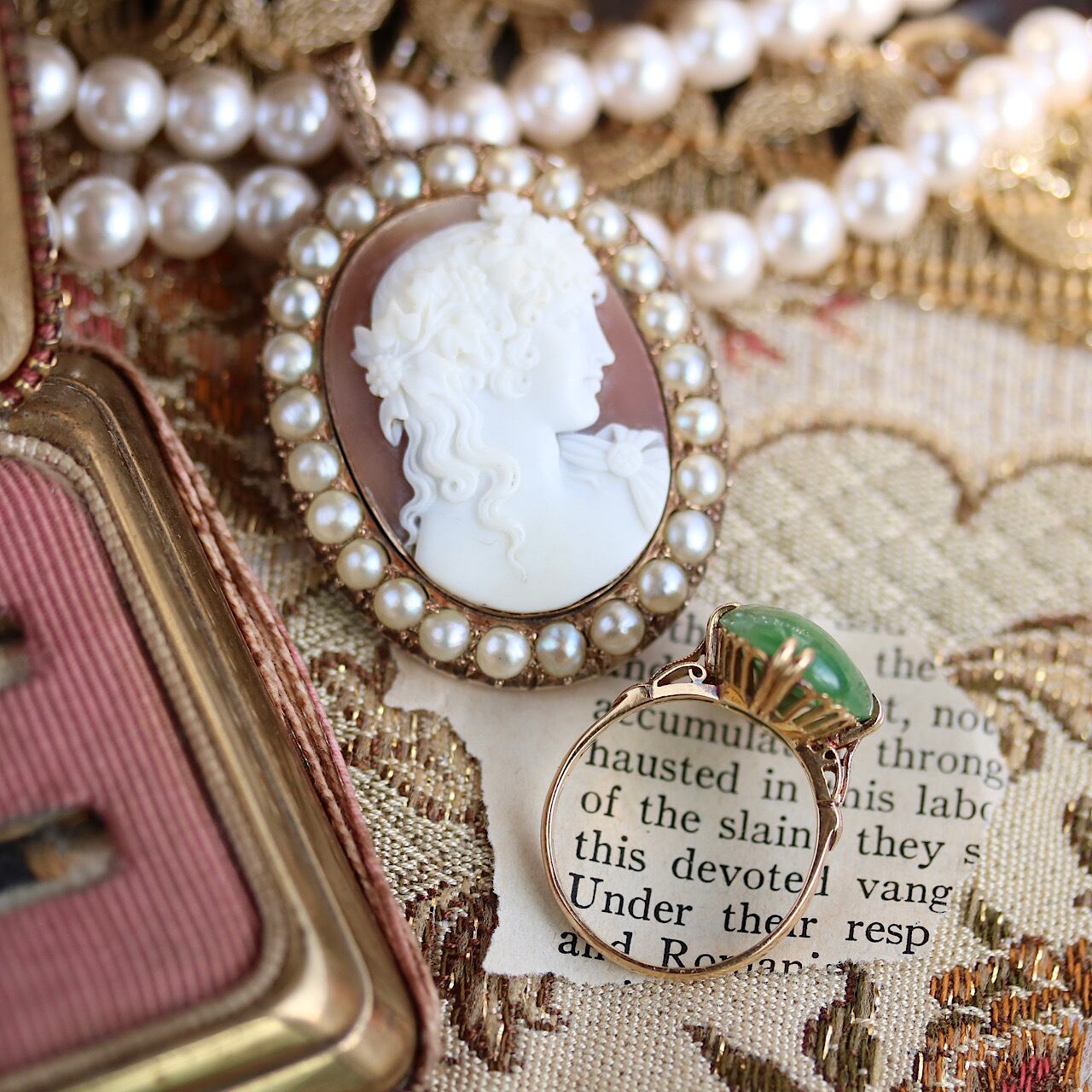 徳力刻印 K18 翡翠の和彫ヴィンテージリング。
