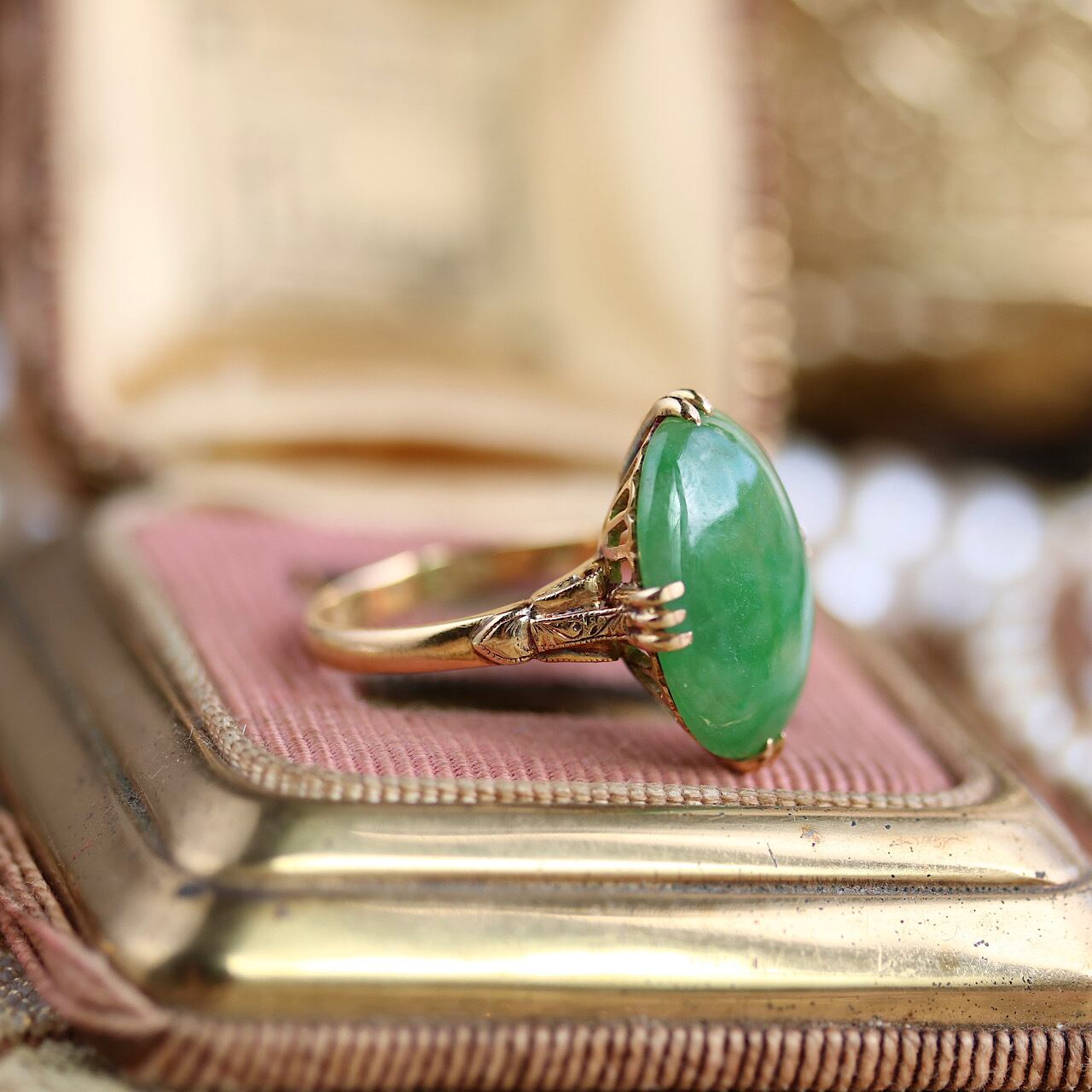 【ご売約品】徳力刻印 K18 翡翠 和彫 ヴィンテージリング ソーティングメモ付