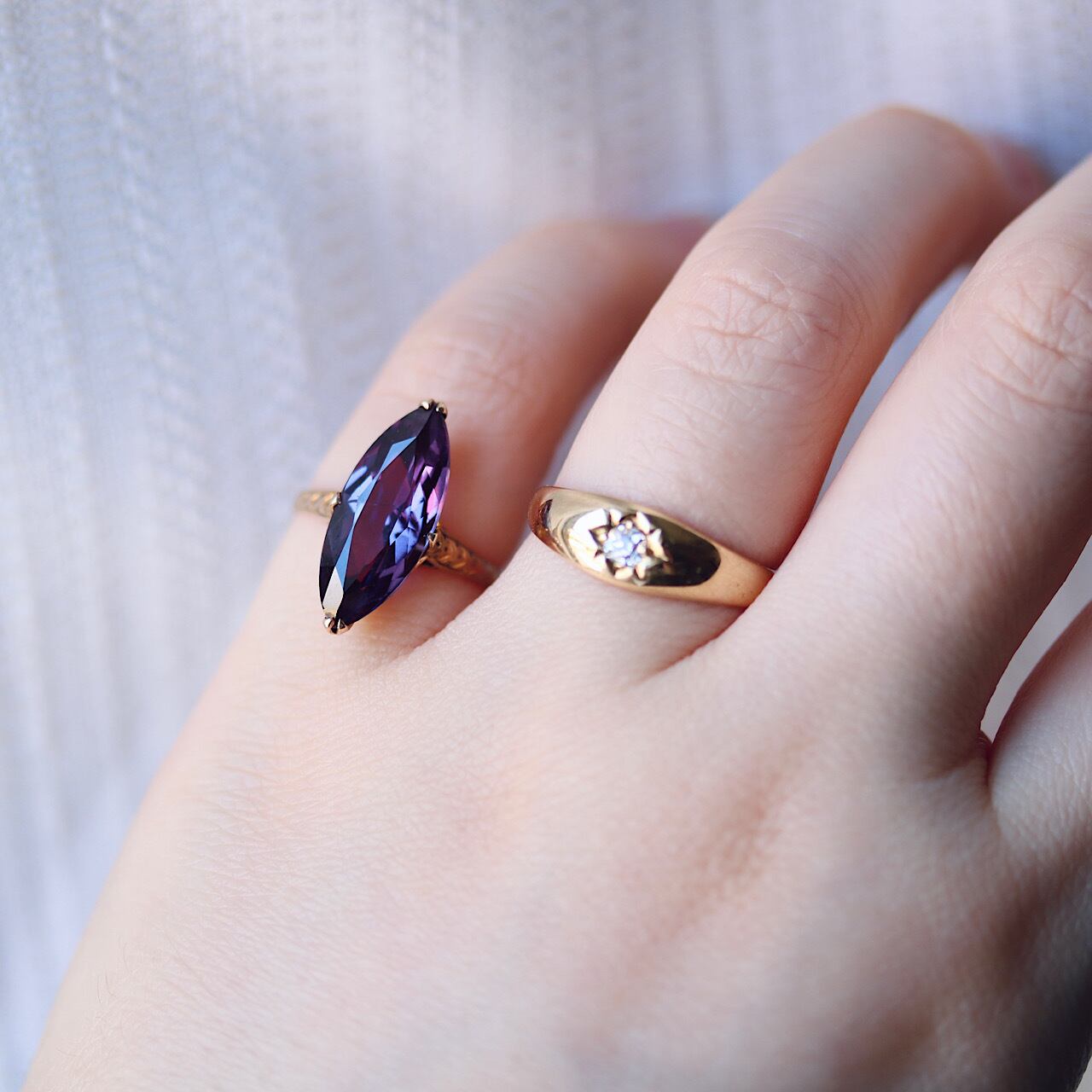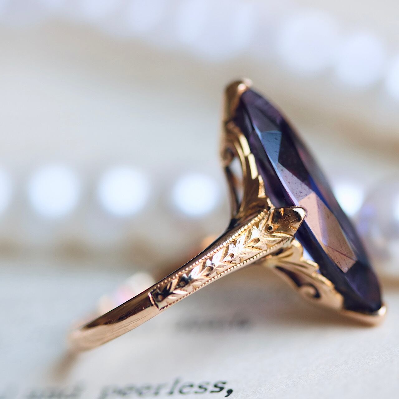 合成ヴァイオレットサファイアの魅惑の美しさが際立つヴィンテージリング。