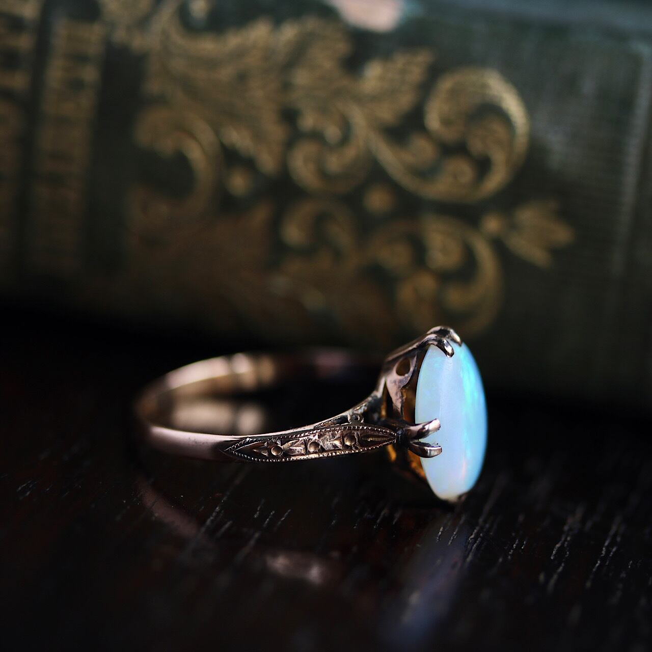 横からご覧になりますと、レースのような透かしがオパールを包み込むようなデザインになっており可愛らしいです。