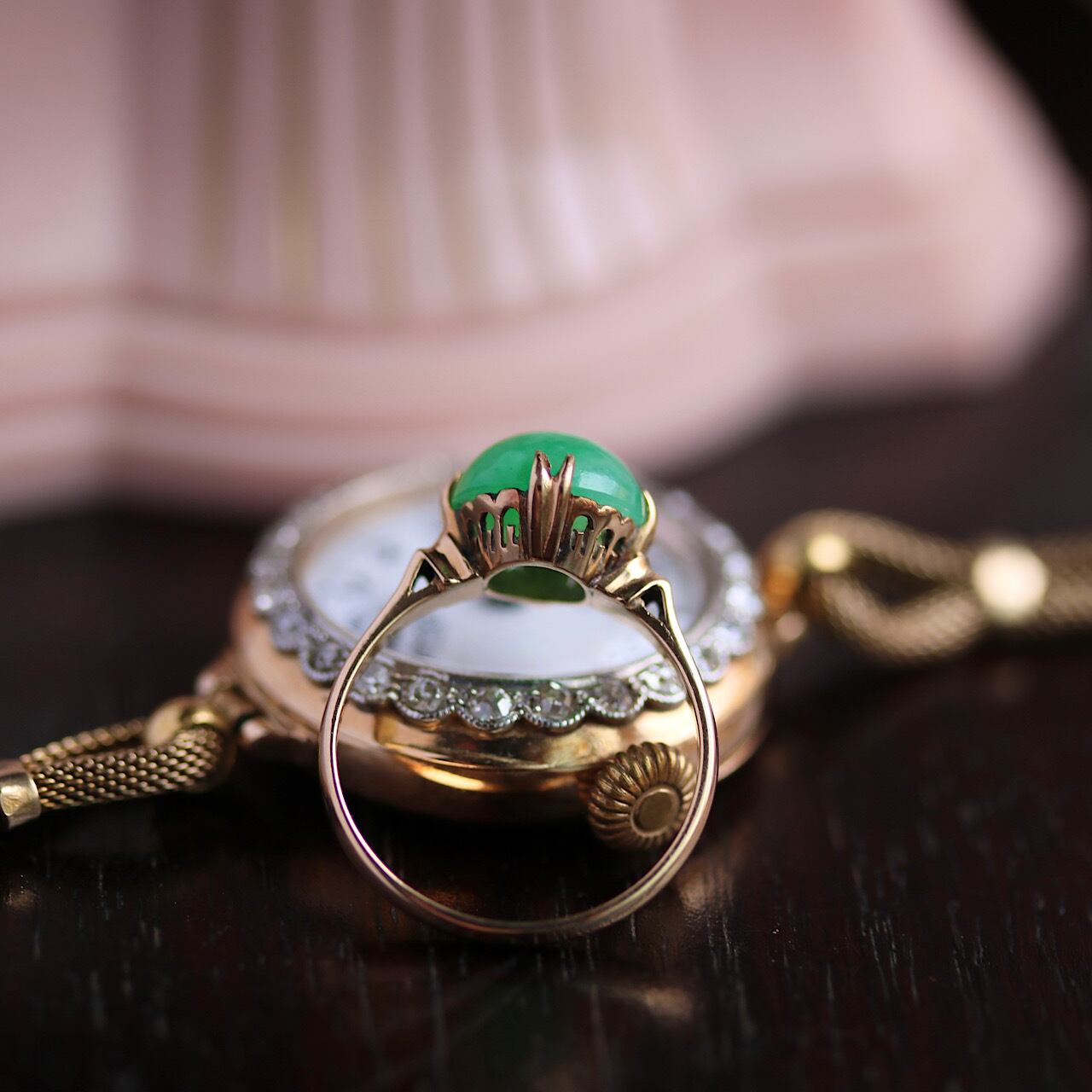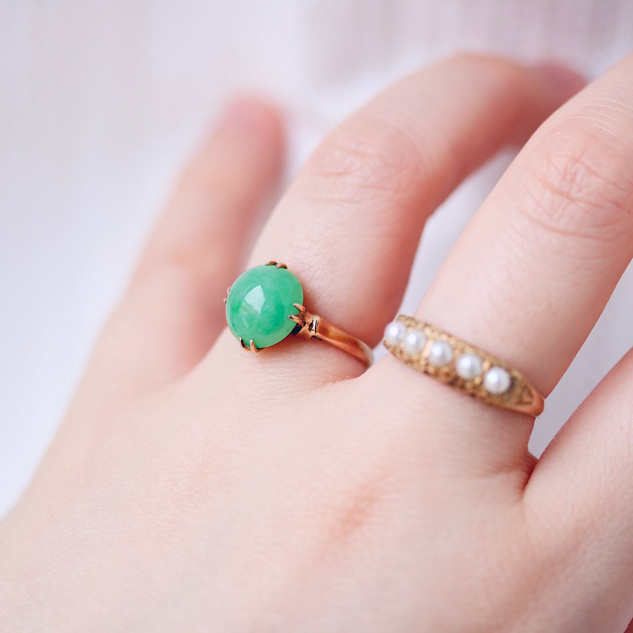 若々しい明るいグリーン色の翡翠のヴィンテージリング。