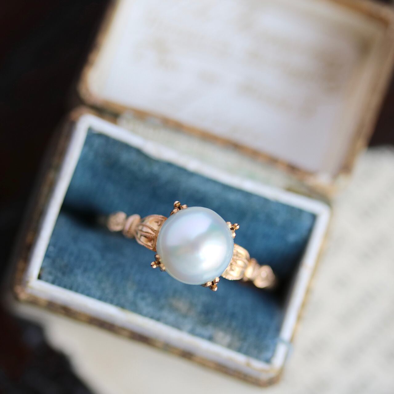 現代では見られない、シンプルに爪で留められた真珠はいじらしく可愛らしさがありますね。