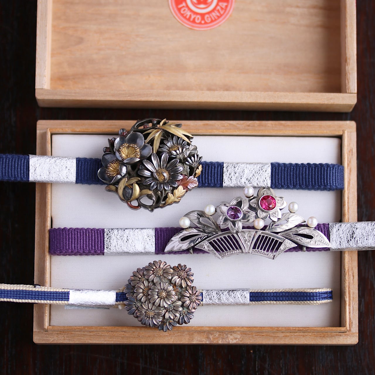 小菊 彫金 金工 アンティーク帯留 作家物 伊勢丹 時代紐付
