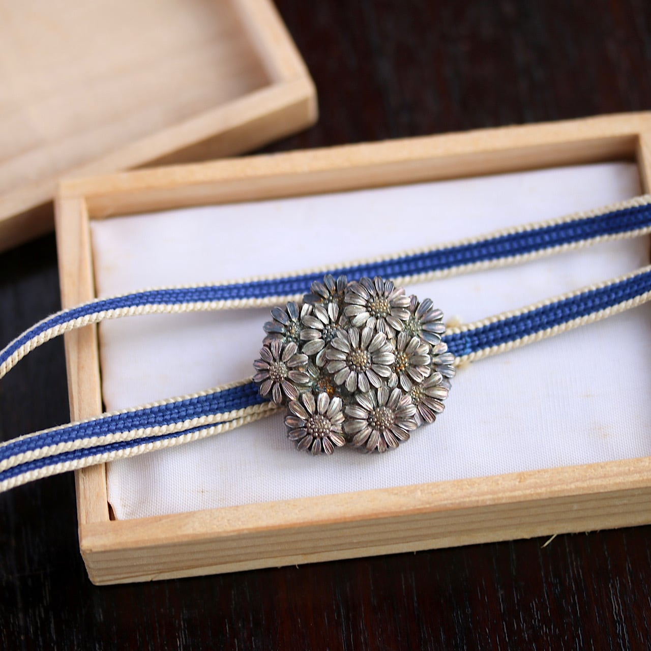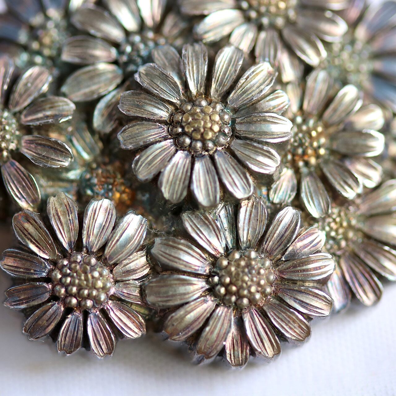 沢山の小菊を集めた花束のような華やかなアンティークの彫金帯留。