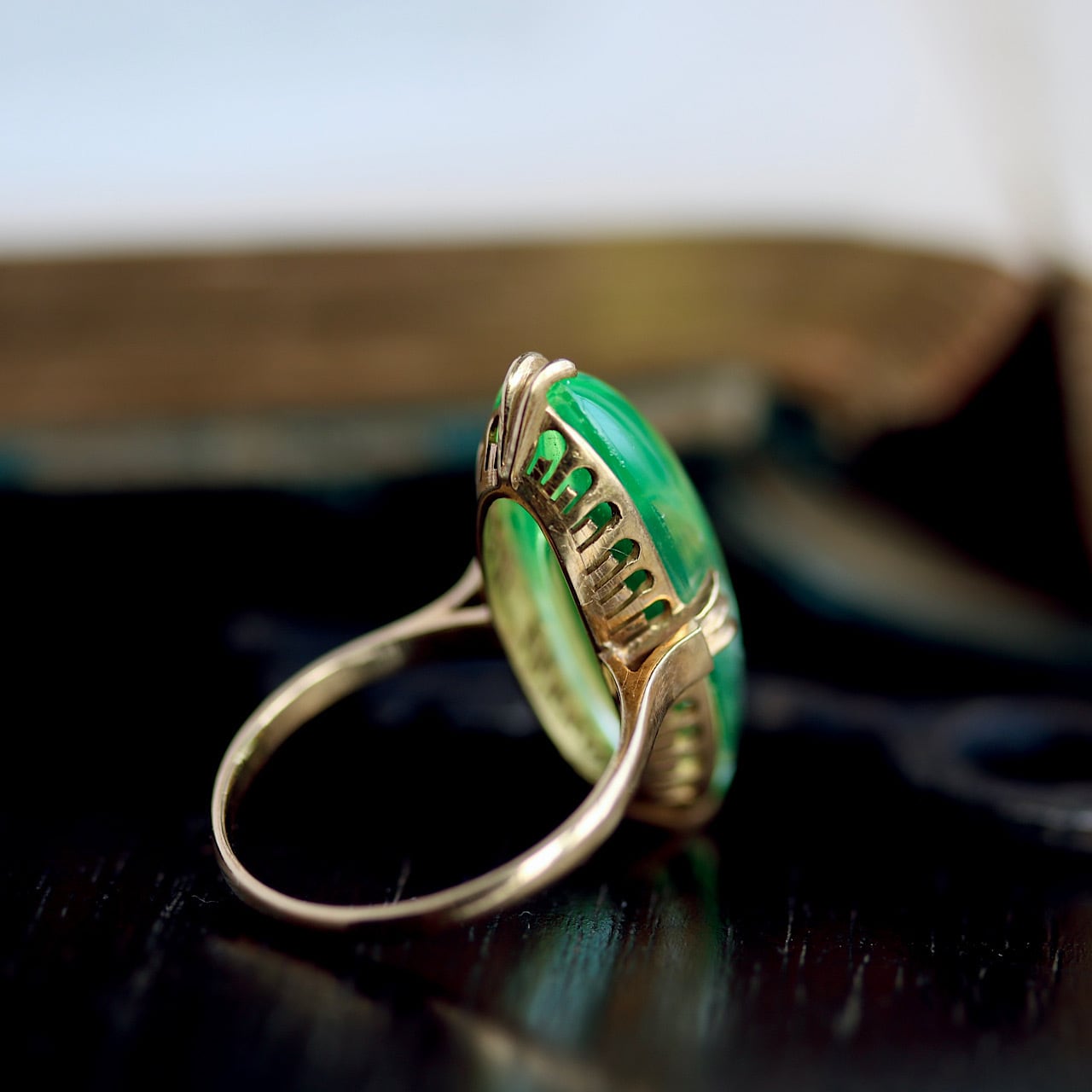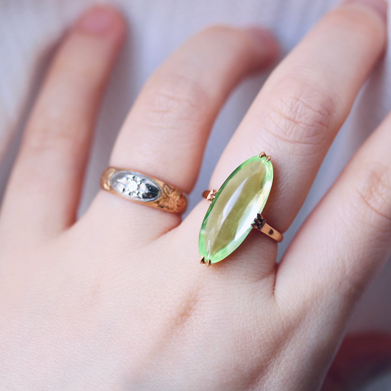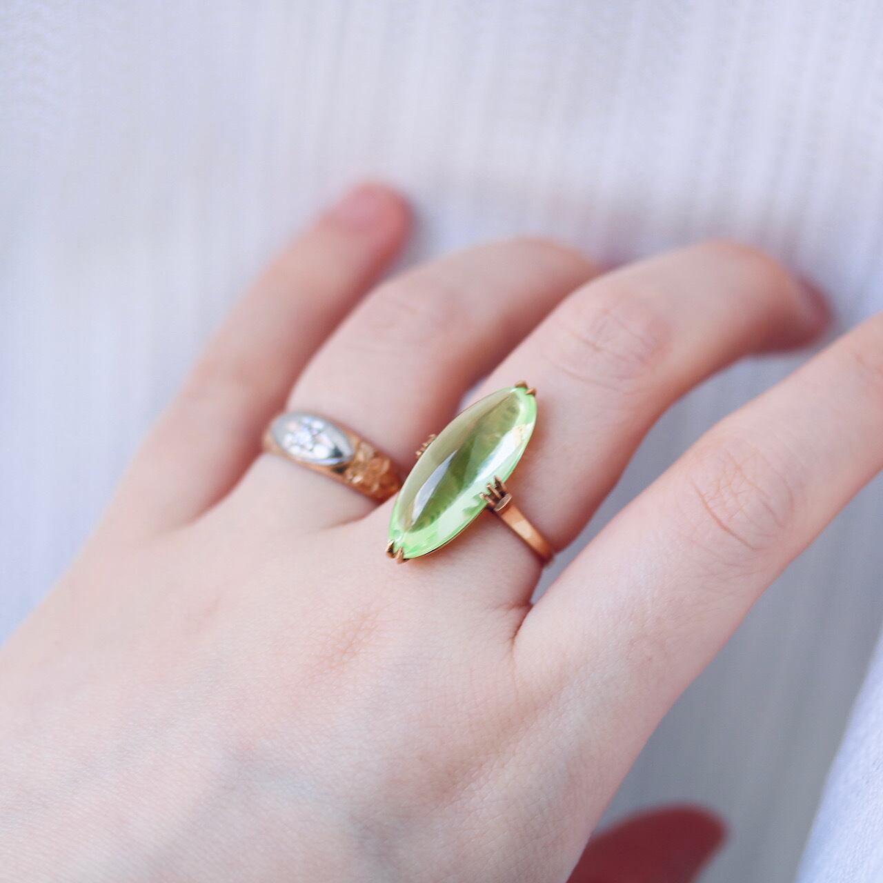 K18 エメラダ 合成ライムグリーンスピネル 王冠透かし ヴィンテージリング デッドストック