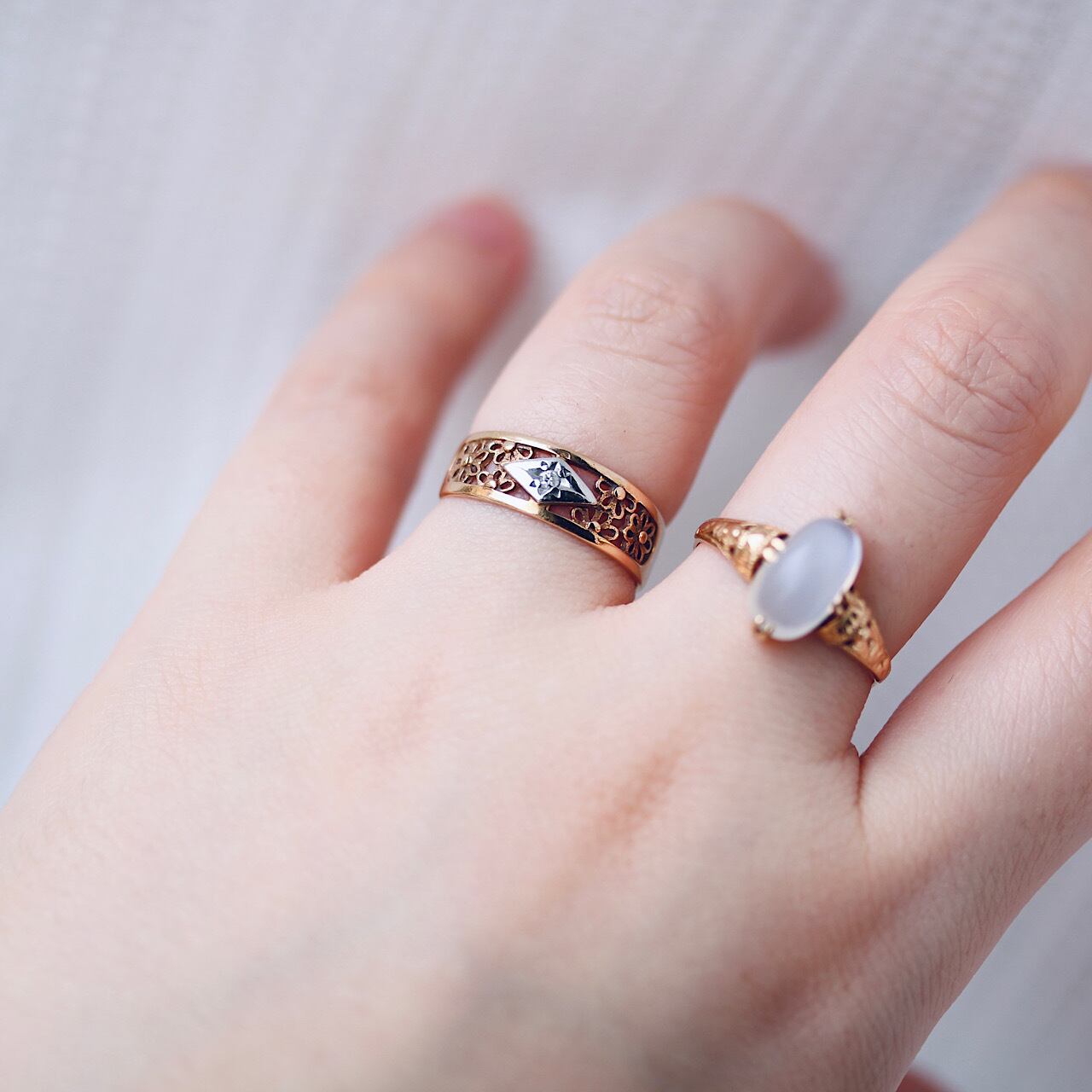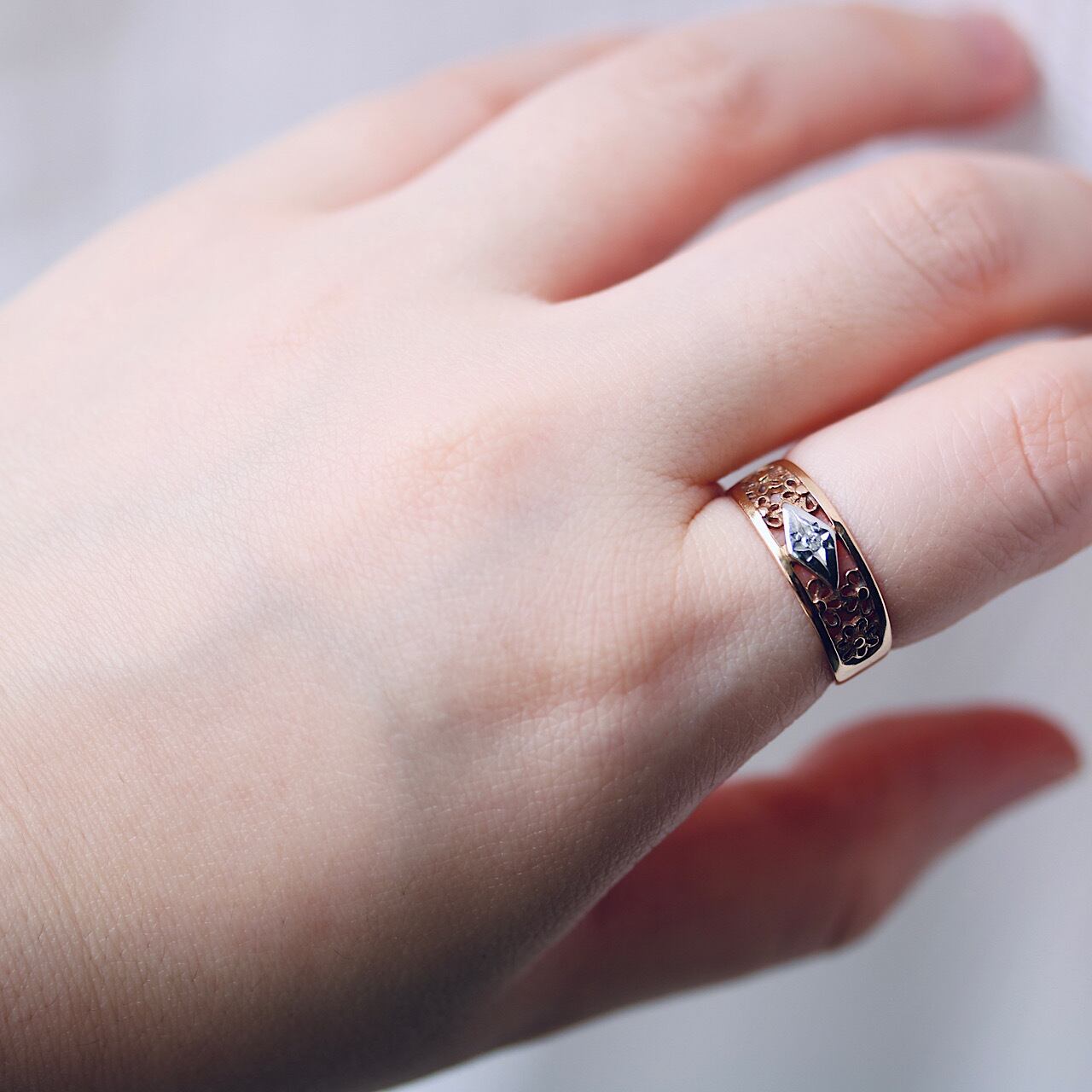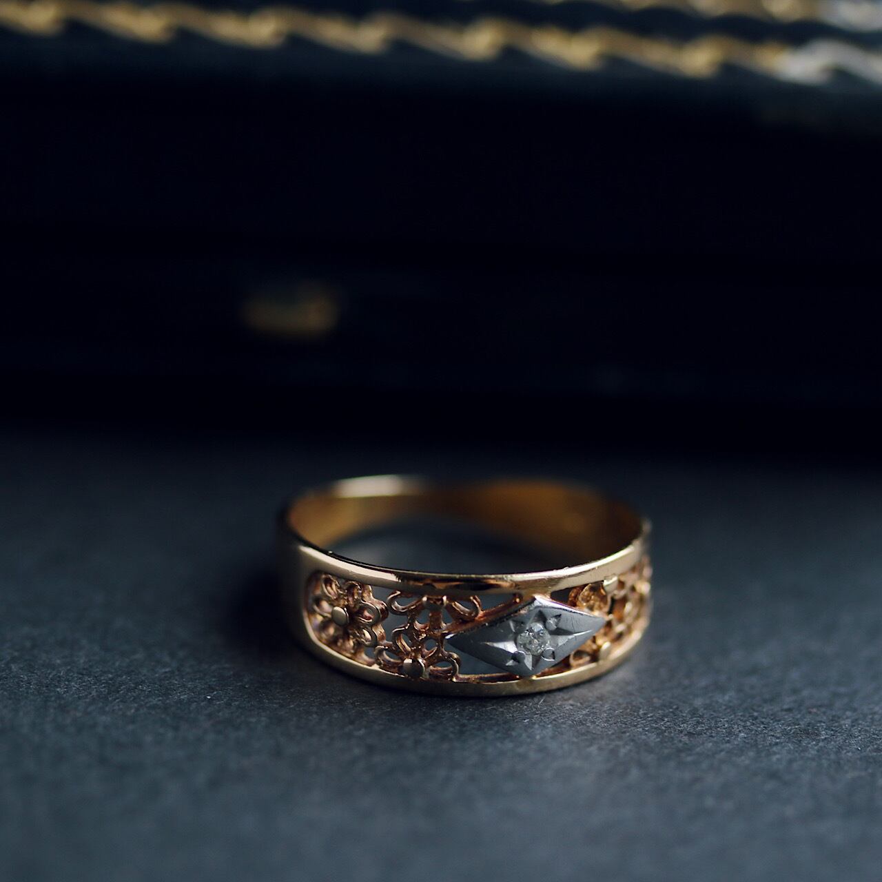 お花の透かしレースを指にまとったような繊細なデザインのK18地金ヴィンテージリング。