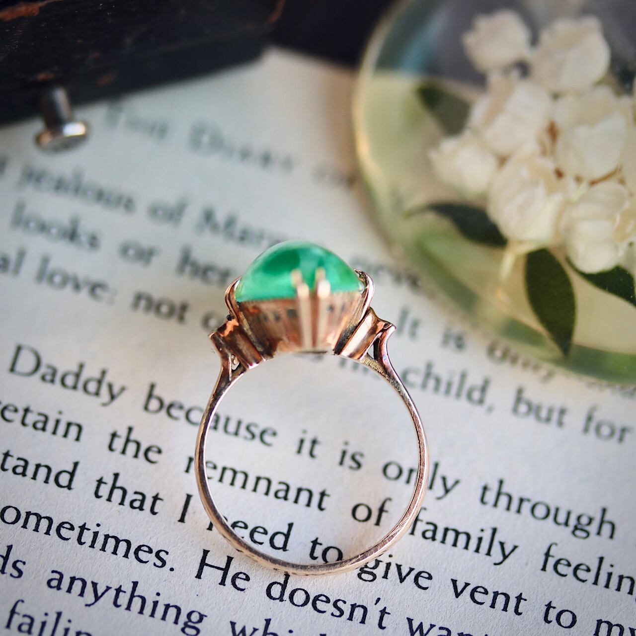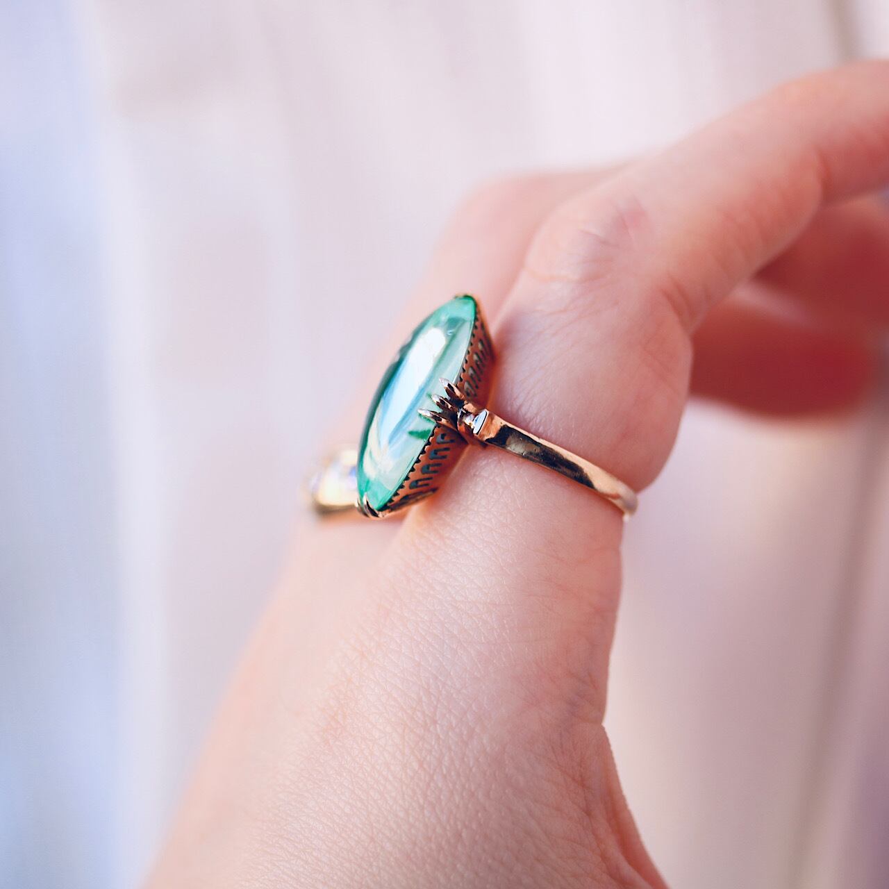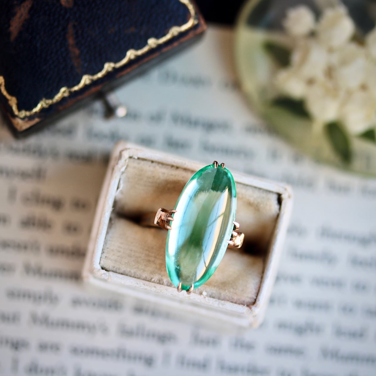 K18 エリナイト 合成ミントグリーンスピネル 王冠透かし ヴィンテージリング