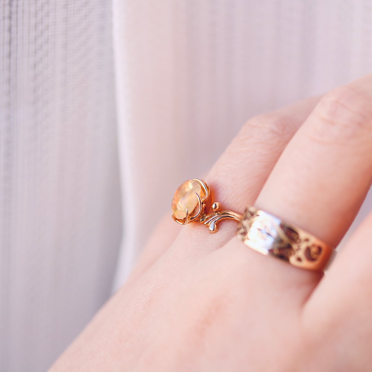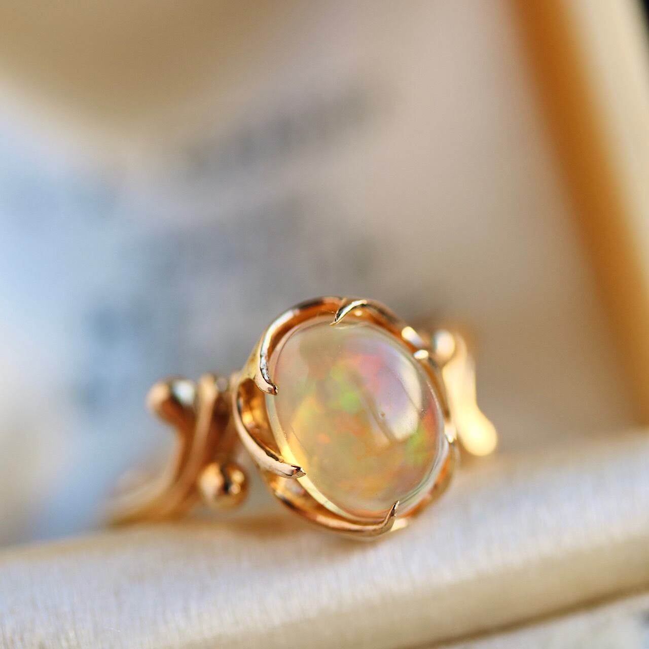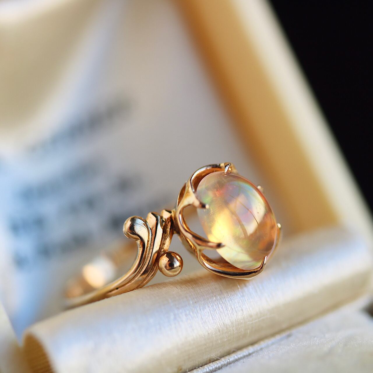 【貴重】K18 ファイアオパール 捻り梅 ヴィンテージリング