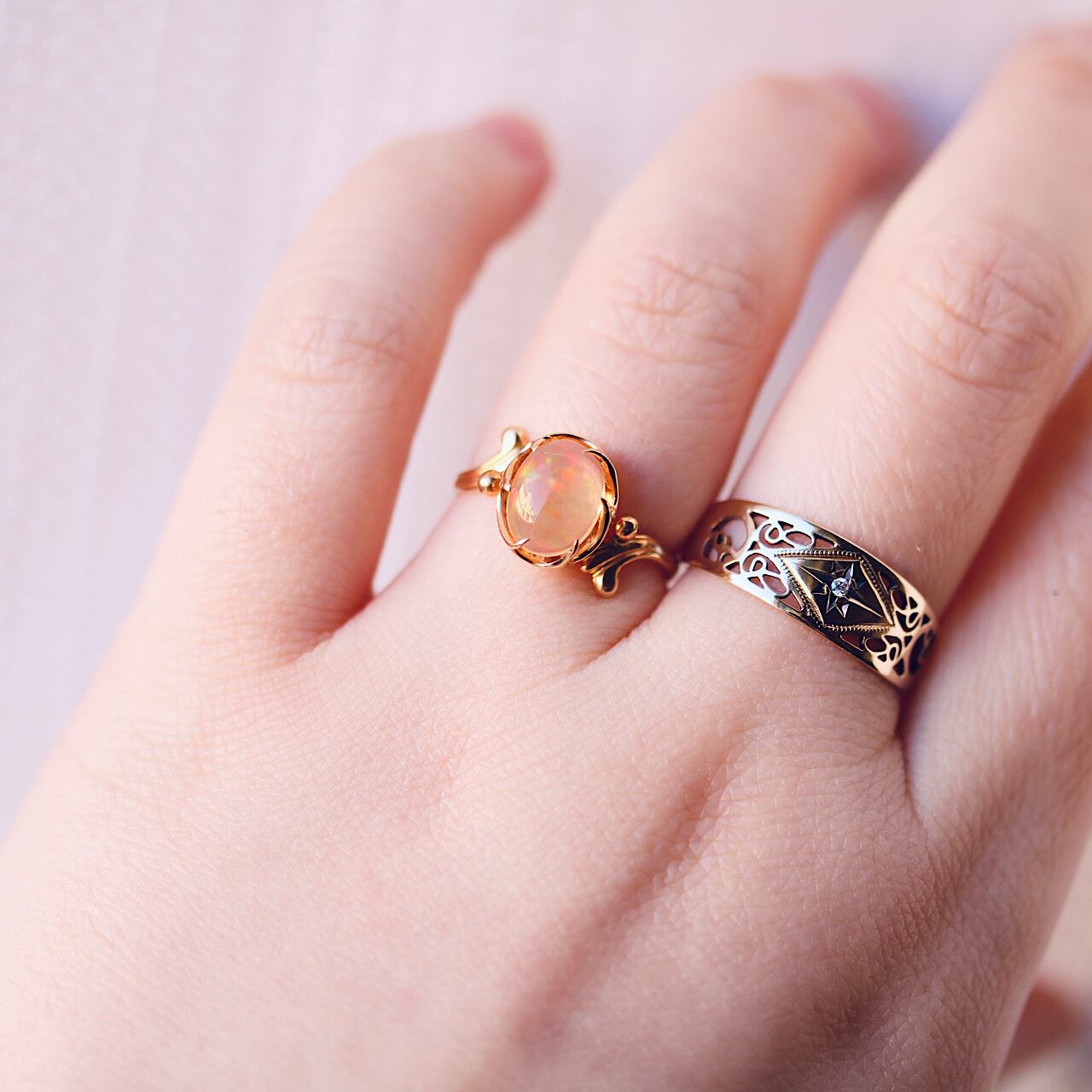 こちらは瑞々しく透明感の強いファイアオパールが使われています。