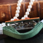 上品で華やかな薔薇が乙女で可愛らしい帯留になります。