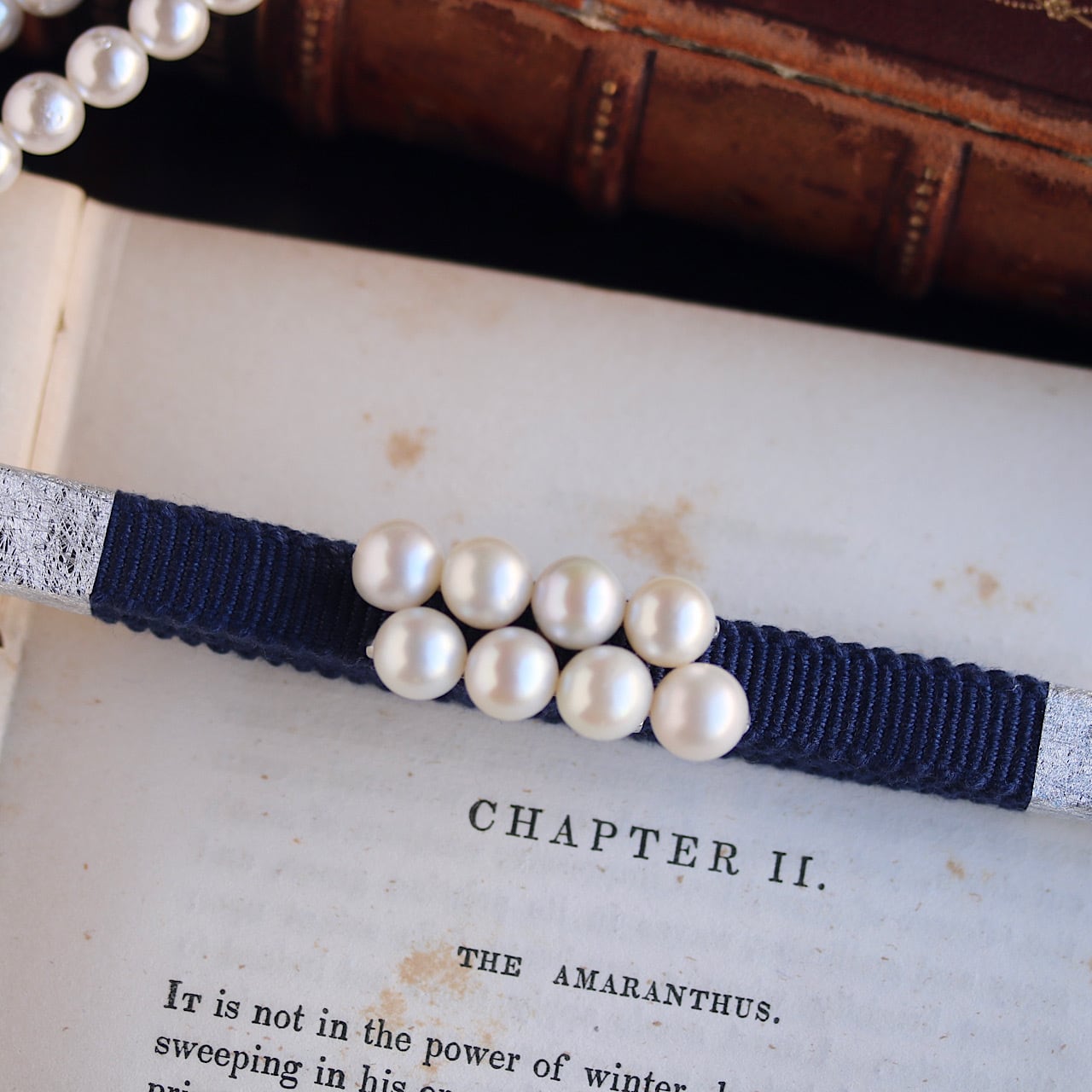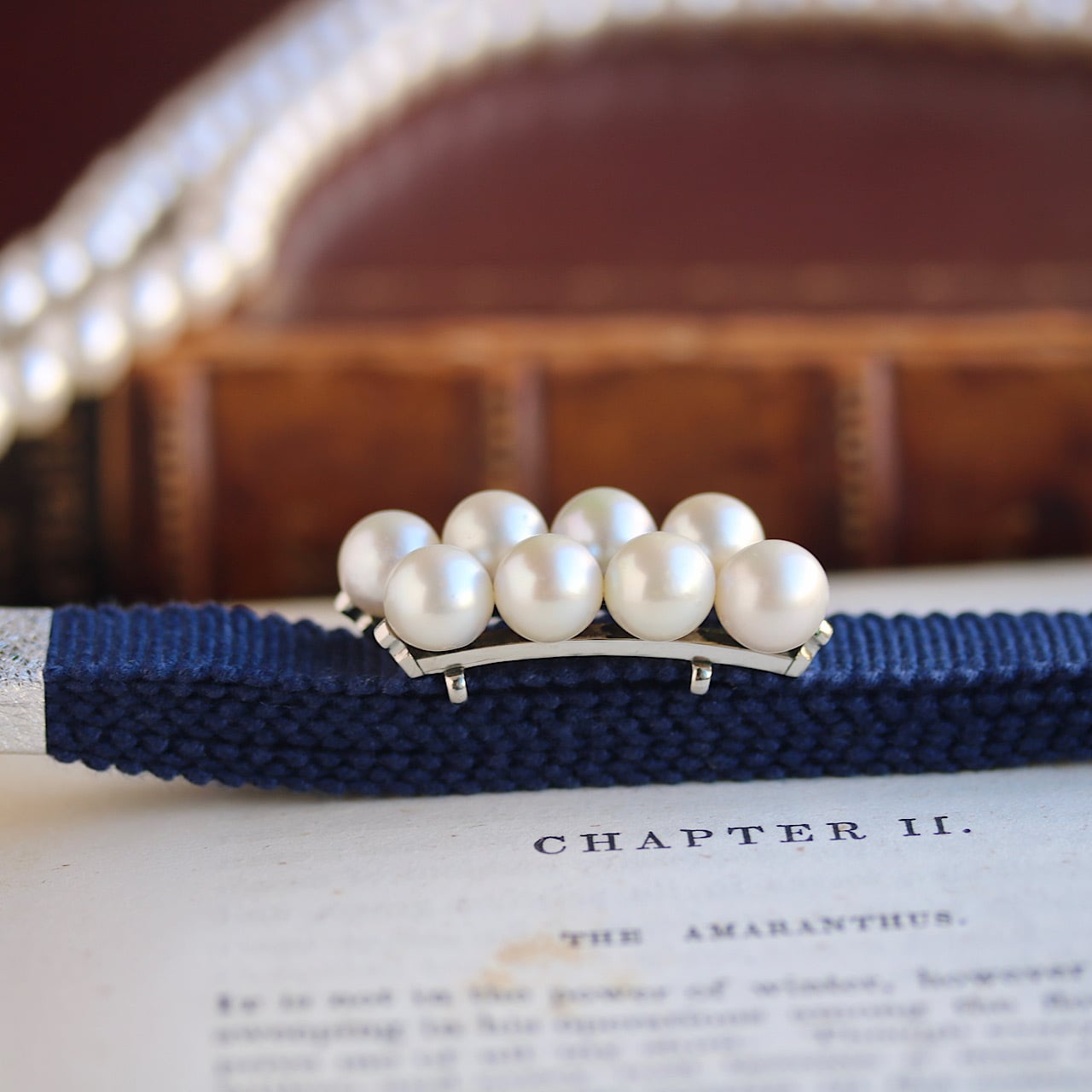 あこや真珠が並んだ、シンプルなアールデコ調のヴィンテージ帯留です。