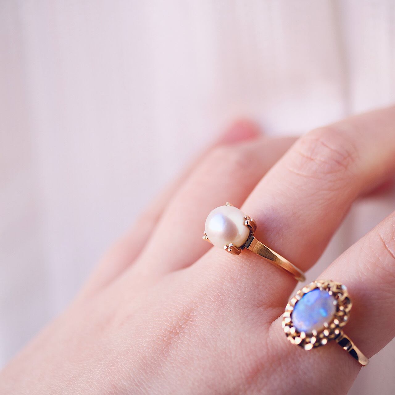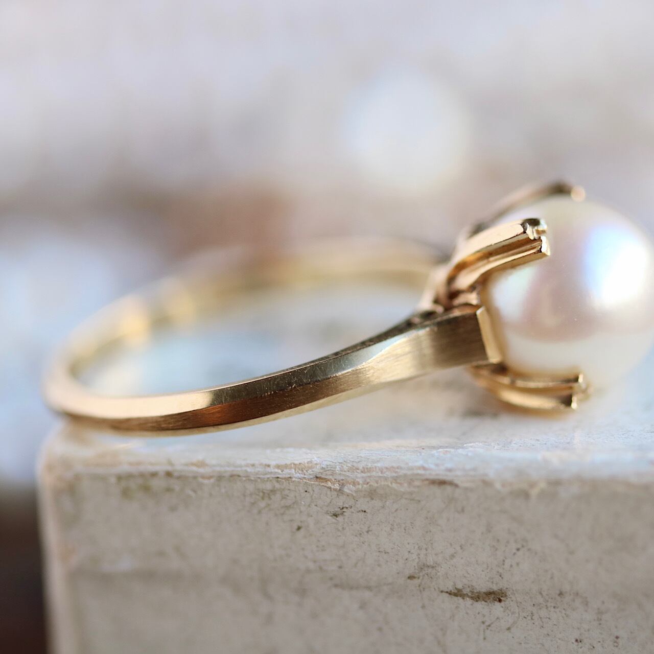 K18 一粒あこや真珠のヴィンテージリング。