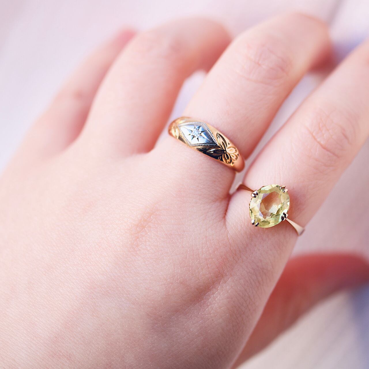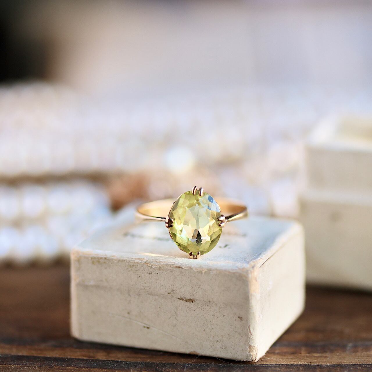 K18 レモンイエロー色の合成石の戦前ヴィンテージリング。