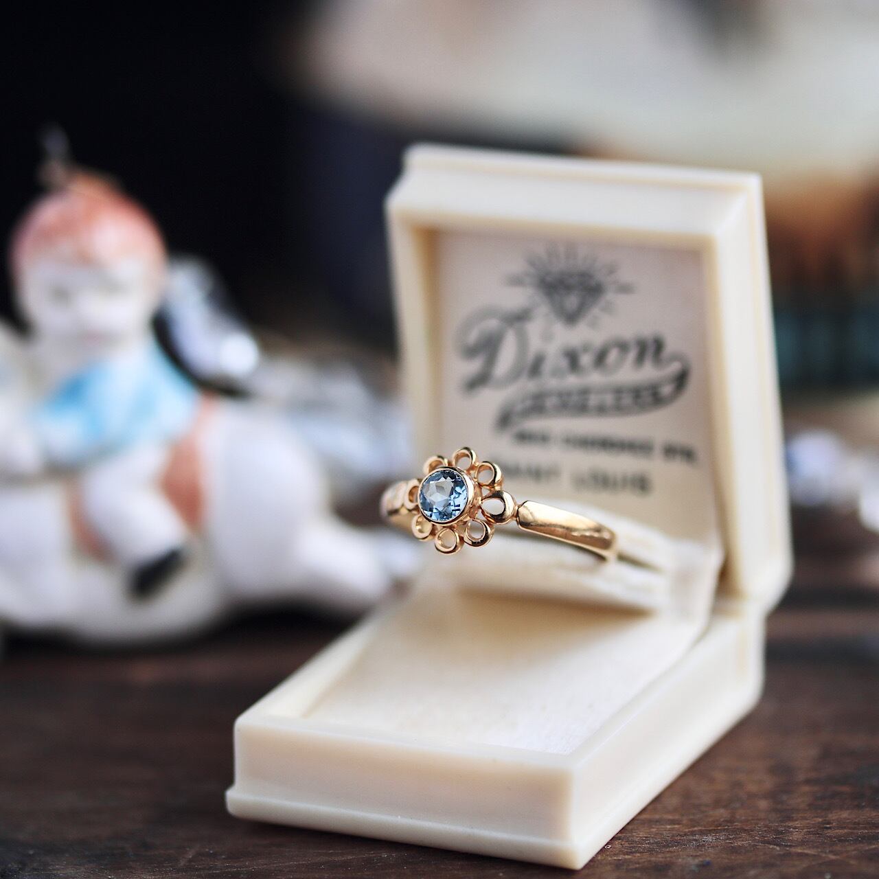 K18 アクアマリン クラシカルなお花モチーフ ヴィンテージリング ソーティング付き