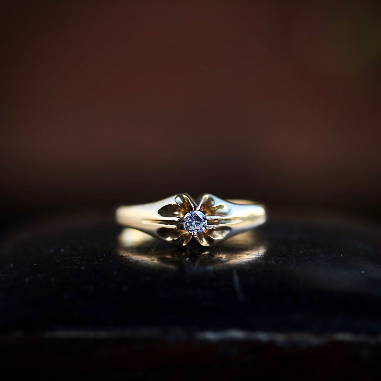 一粒の天然ダイヤモンドが際立つK18菊爪ヴィンテージリング。