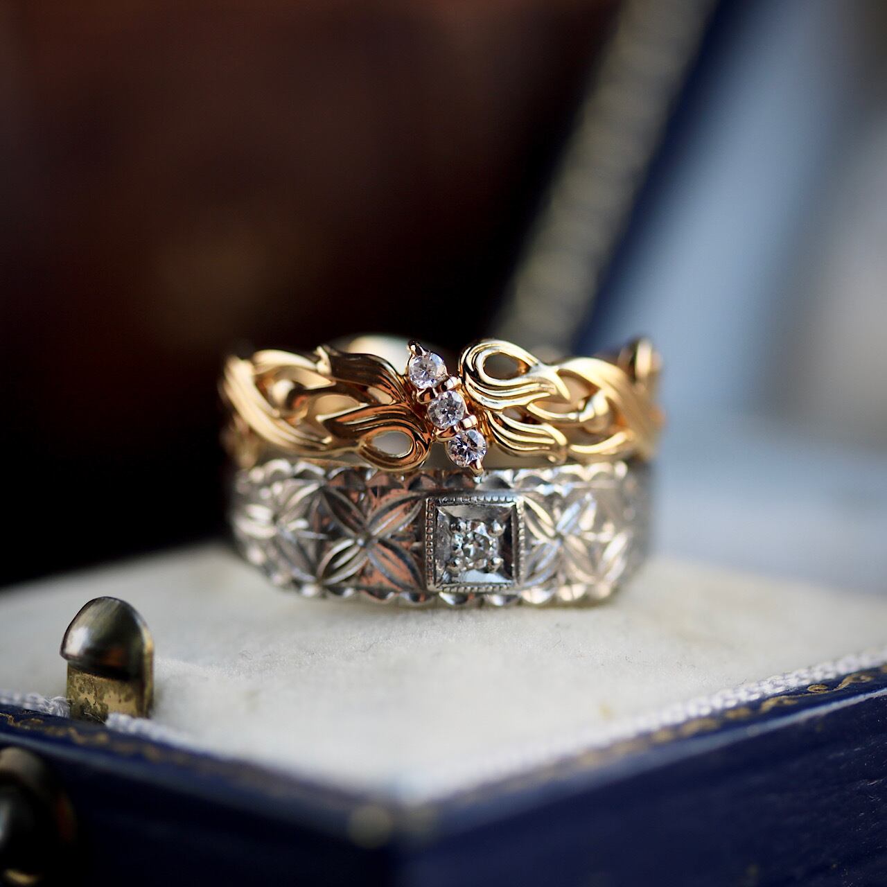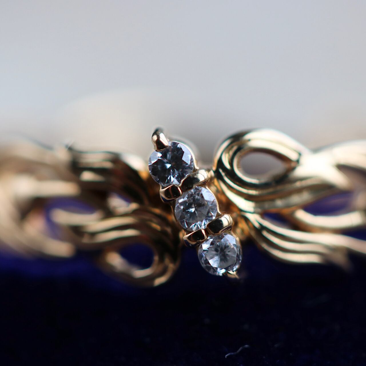 K18 メレダイヤ 唐草模様の地金ヴィンテージリング。