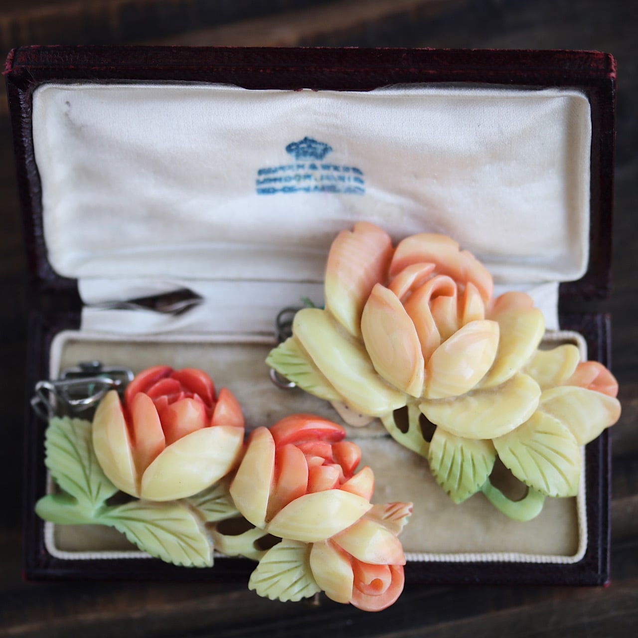 セルロイド製 一輪の薔薇 アンティーク帯留 タグ付 デッドストック品