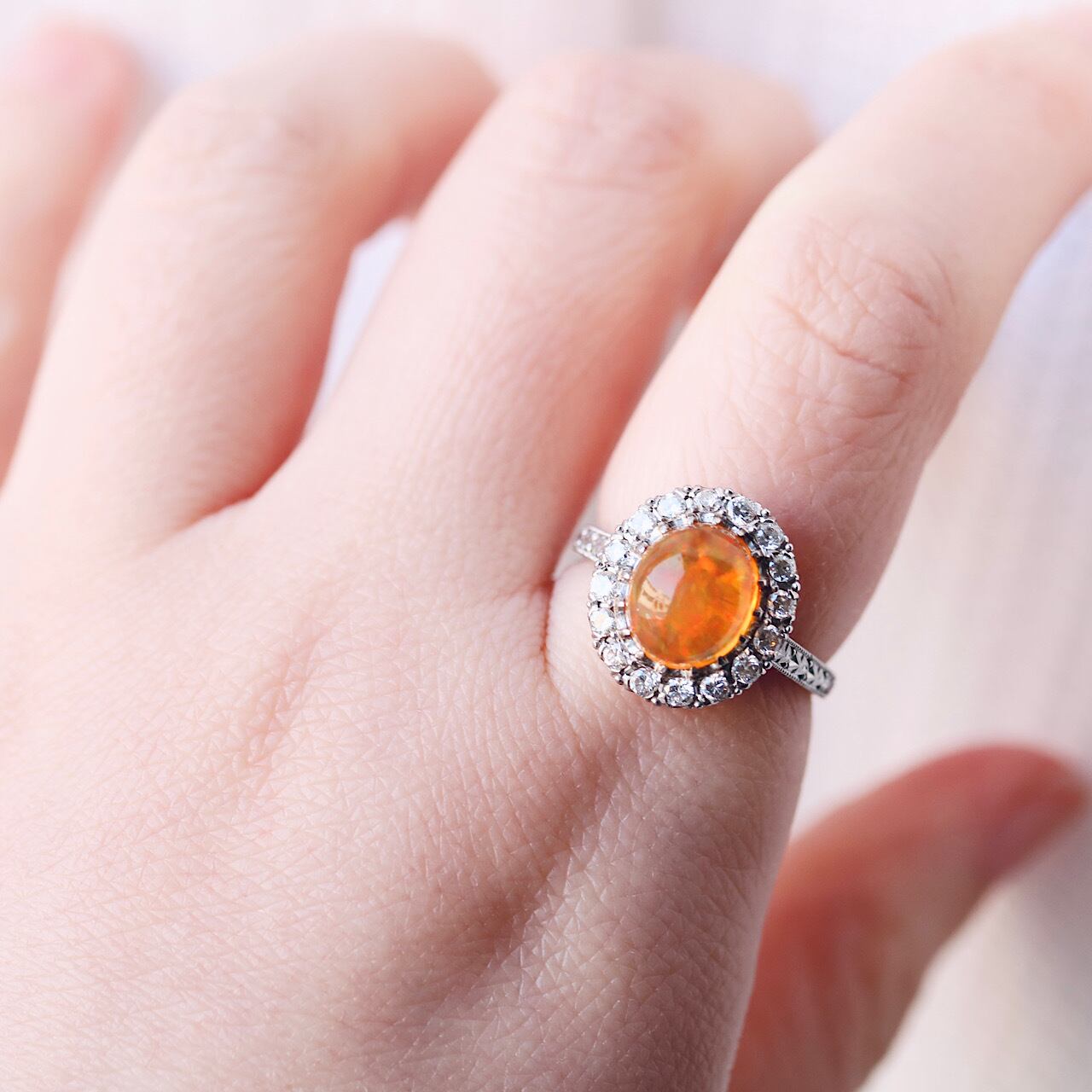 ファイアオパールの取り巻きリングは他でも見られますが、ここまで芸術性の高いデザインのものは珍しいです。